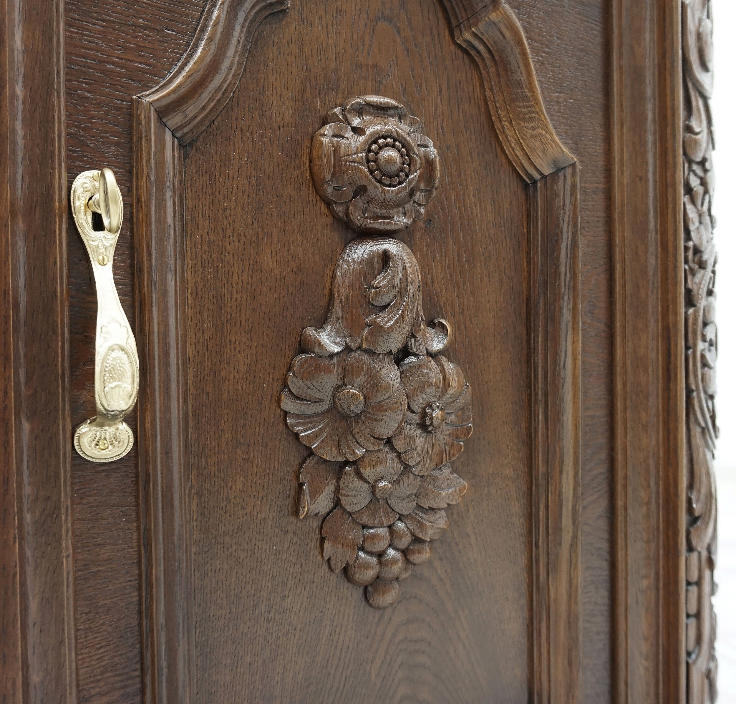 Представляем комплект офисной мебели, состоящий из библиотеки, письменного стола и кресла. Мебель изготовлена из дуба. Набор был тщательно отремонтирован с особым вниманием к деталям. Богатую текстуру древесины дуба подчеркнули благодаря использованию морилки теплого коричневого оттенка. Столярные изделия покрыты множеством слоев полуматового лака, благодаря которому древесина эффективно защищена от внешних факторов.