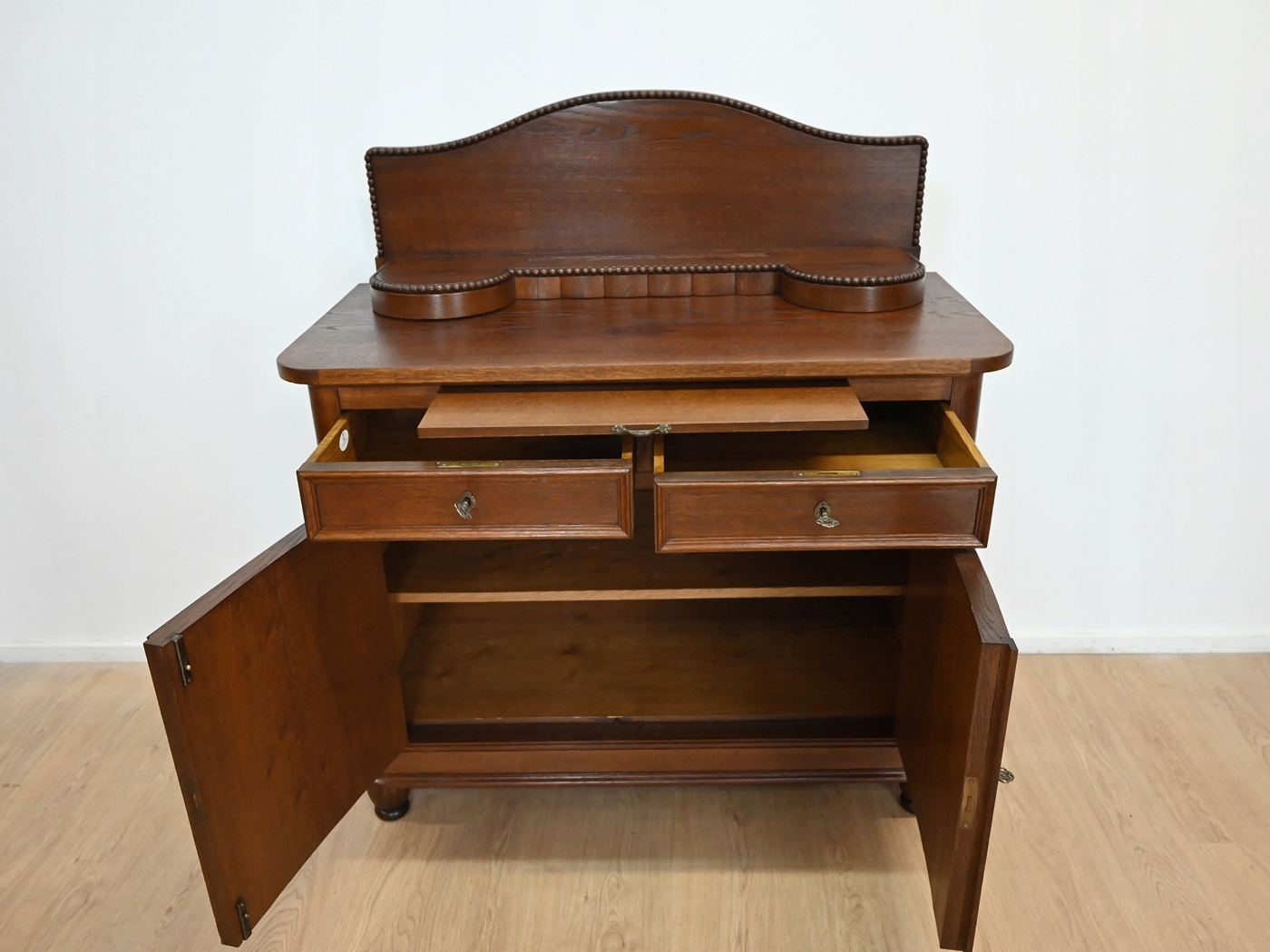 В очень хорошем состоянии. Мебель готова к использованию. Обновились внешние поверхности и интерьер мебели. Мебель уже старая и следы прошлого, не влияющие на ее эстетическое восприятие, являются доказательством подлинности мебели. Комод можно сразу разместить в квартире.