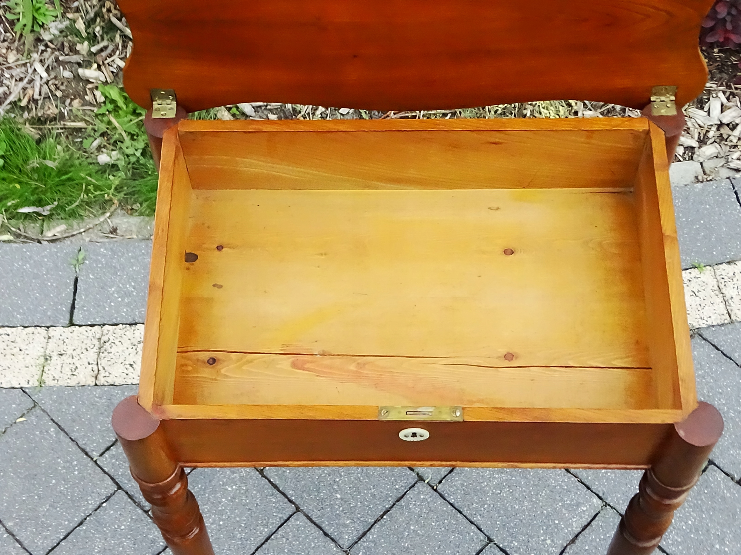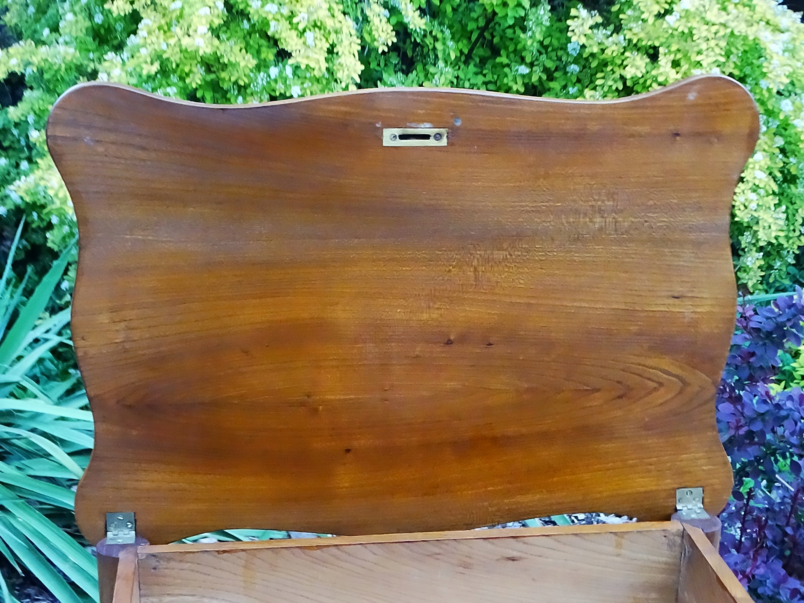 Антикварный старинный низкий столик с открывающейся столешницей.