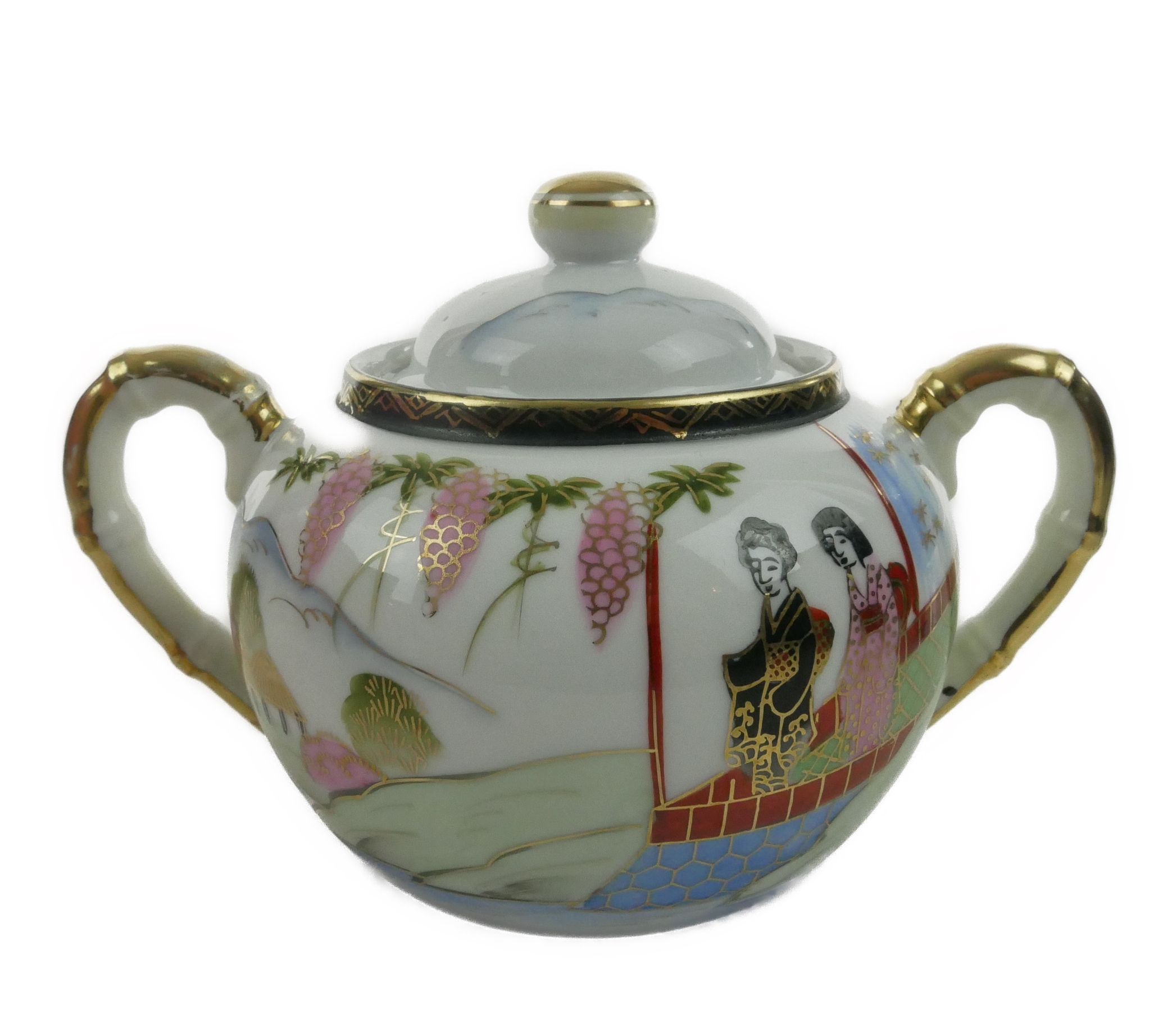 АНТИКВАРНО - СХІДНА ЦУКЕРНИЦЯ З ТОНКОГО ФОРФОРУ "ЯЄЧНА ШКАРУПКА"