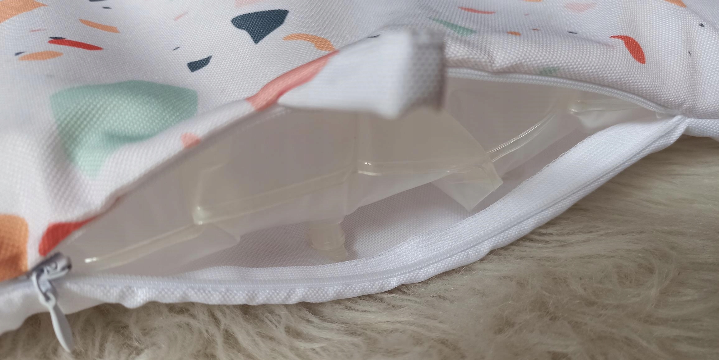 Подушка застегивается на длинную закрытую молнию.