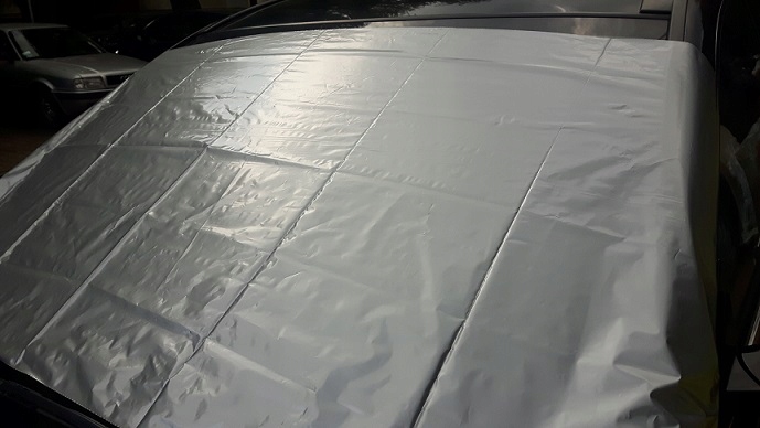 Представленное покрытие представляет собой практичное незамерзающее покрытие, защищающее лобовое стекло припаркованного автомобиля от скапливающегося инея, снега и льда.