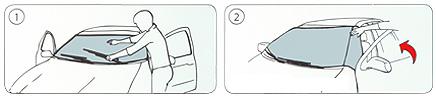 1. Расположите накладку симметрично на лобовом стекле так, чтобы нижняя часть оказалась под щетками стеклоочистителей