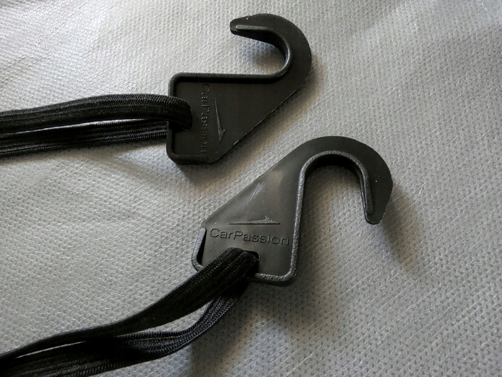 - Простой и интуитивно понятный монтаж. Чехол крепится с помощью резинок, заканчивающихся пластиковыми крючками, которые следует прикрепить к дискам или колпакам автомобиля.