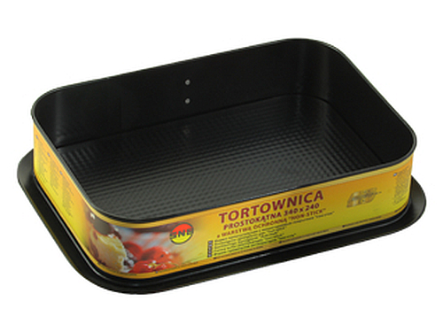 Высококачественное b> Cake Cain из производителя польского. Размеры: внутренние 34x24x8 см. изготовлен из высококачественного низкого уровня. На стороне есть застежка для облегчения применения/удаления обода. Форма с защитным слоем «неприменение» повышает устойчивость к приклеиванию теста, экономит энергию (покрытие лака способствует поглощению тепла), тесто нагревается более интенсивно и равномерно, чем в формах без покрытия) и намного проще мыть после использования