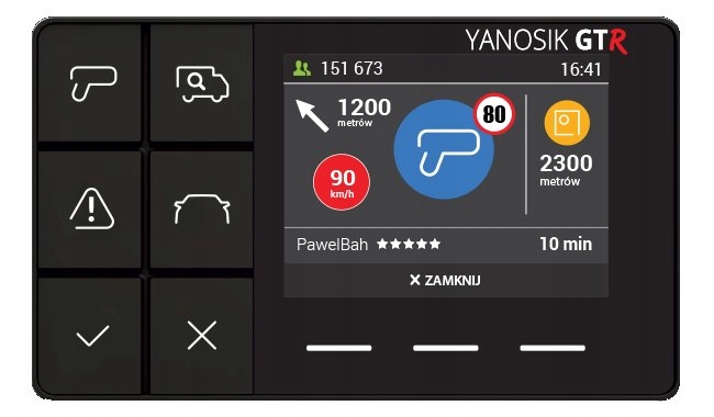Yanosik GTR также имеет специально разработанный интерфейс для мотоциклистов, который упрощает использование устройства во время езды на мотоцикле. Большие физические кнопки позволяют легко управлять устройством даже в перчатках!