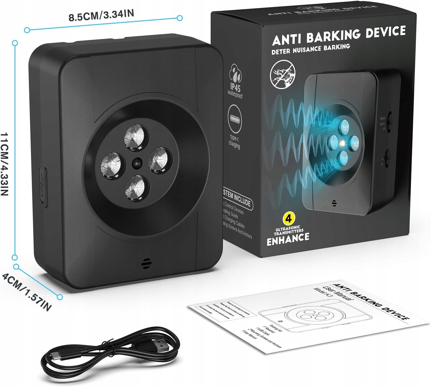 Новое устройство против лая для домашних животных. Это устройство против лая для собак безопасно и мягко излучает ультразвуковые волны, останавливая лай собаки, не причиняя ей физического вреда. Мы предлагаем собаке отреагировать на ультразвуковой звук собаки и успокоиться, в нужный момент получить похвалу и награду, чтобы научить собаку тому, что спокойствие - это правильное поведение.