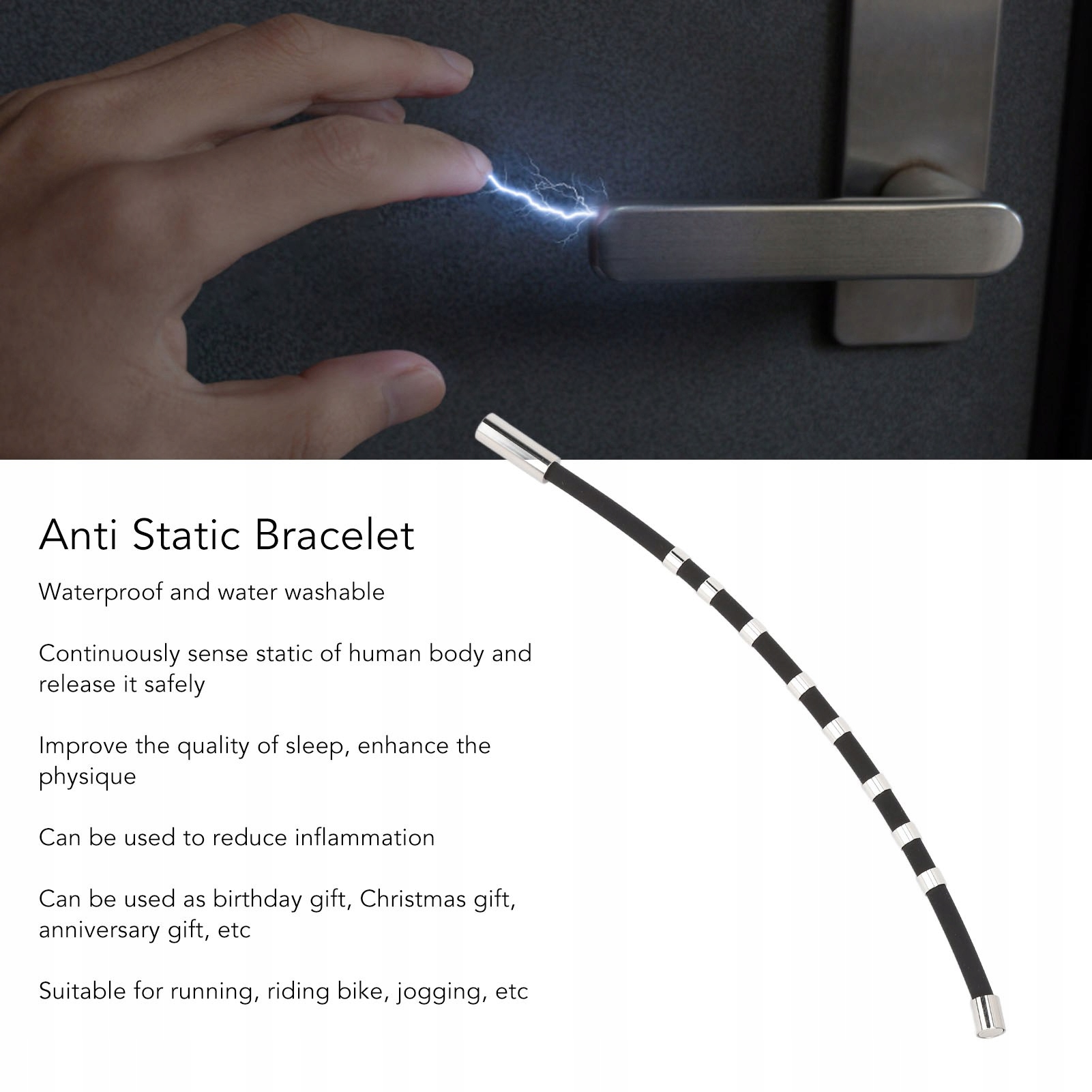 1. Легко носить: антистатический браслет может постоянно определять статику человеческого тела и безопасно снимать ее, улучшать качество сна, улучшать форму тела и уменьшать воспаление.