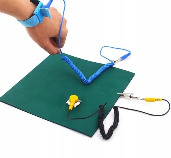 Длина кабеля 1,5 метра. Зажим на конце позволяет соединить заземление с заземляющим браслетом, ковриком и т. д.