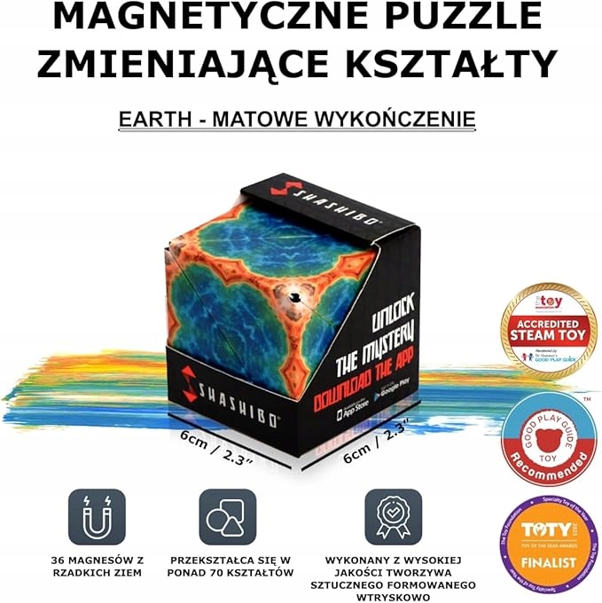 В отличие от других магнитных пазлов, Шашибо впечатляет своим качеством и функциональностью. Благодаря 36 сильным магнитам из редкоземельных металлов куб принимает более 70 уникальных форм - от простых форм до сложных пространственных конструкций.