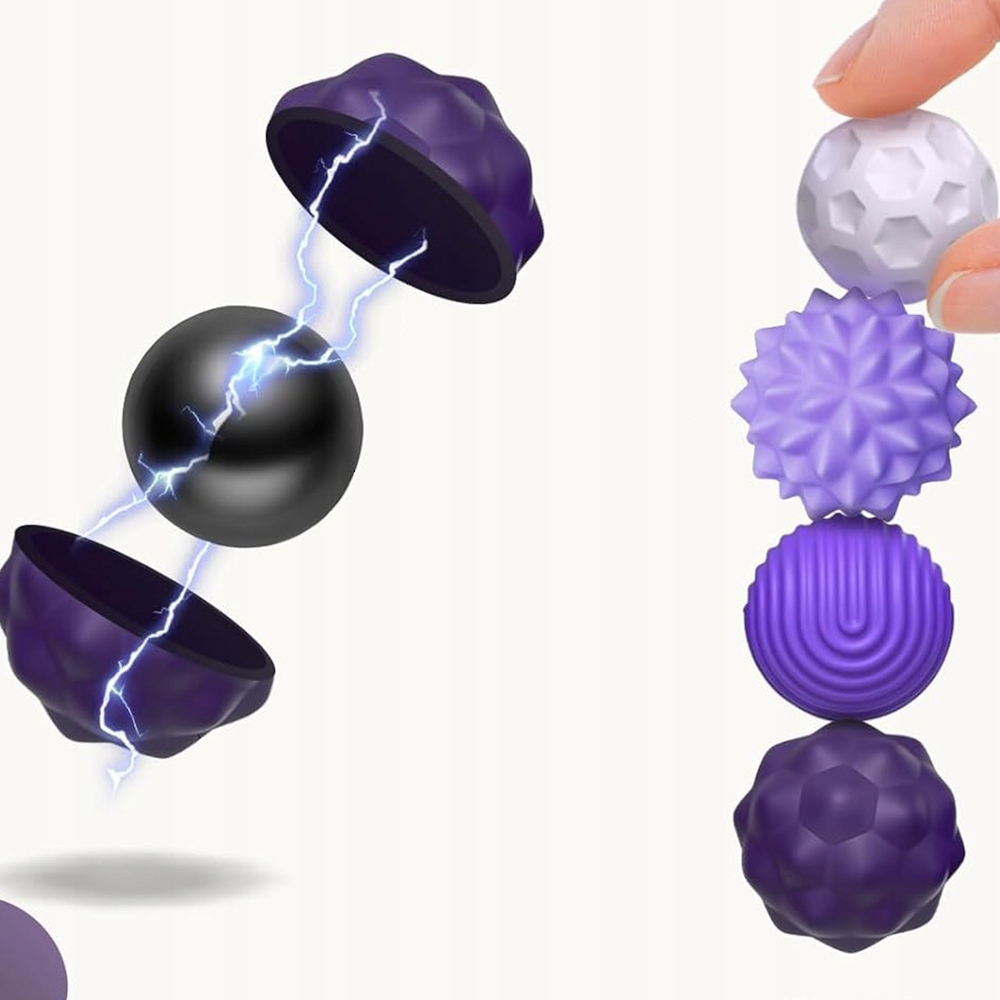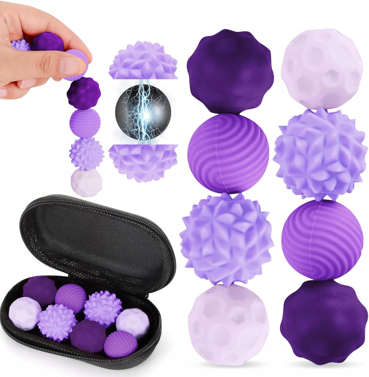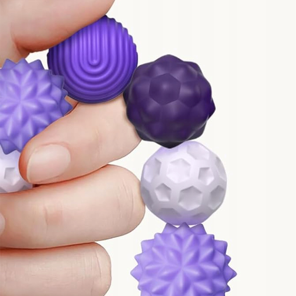 Каждый из 8 магнитных шариков имеет уникальную текстуру (бороздки, холмы, волны и т. д.), которые обеспечивают богатую тактильную стимуляцию. Различные поверхности способствуют сенсорному исследованию и тактильному восприятию.