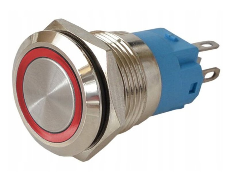 Выключатель ПБС-33Б, металлический, кольцо с подсветкой - красный