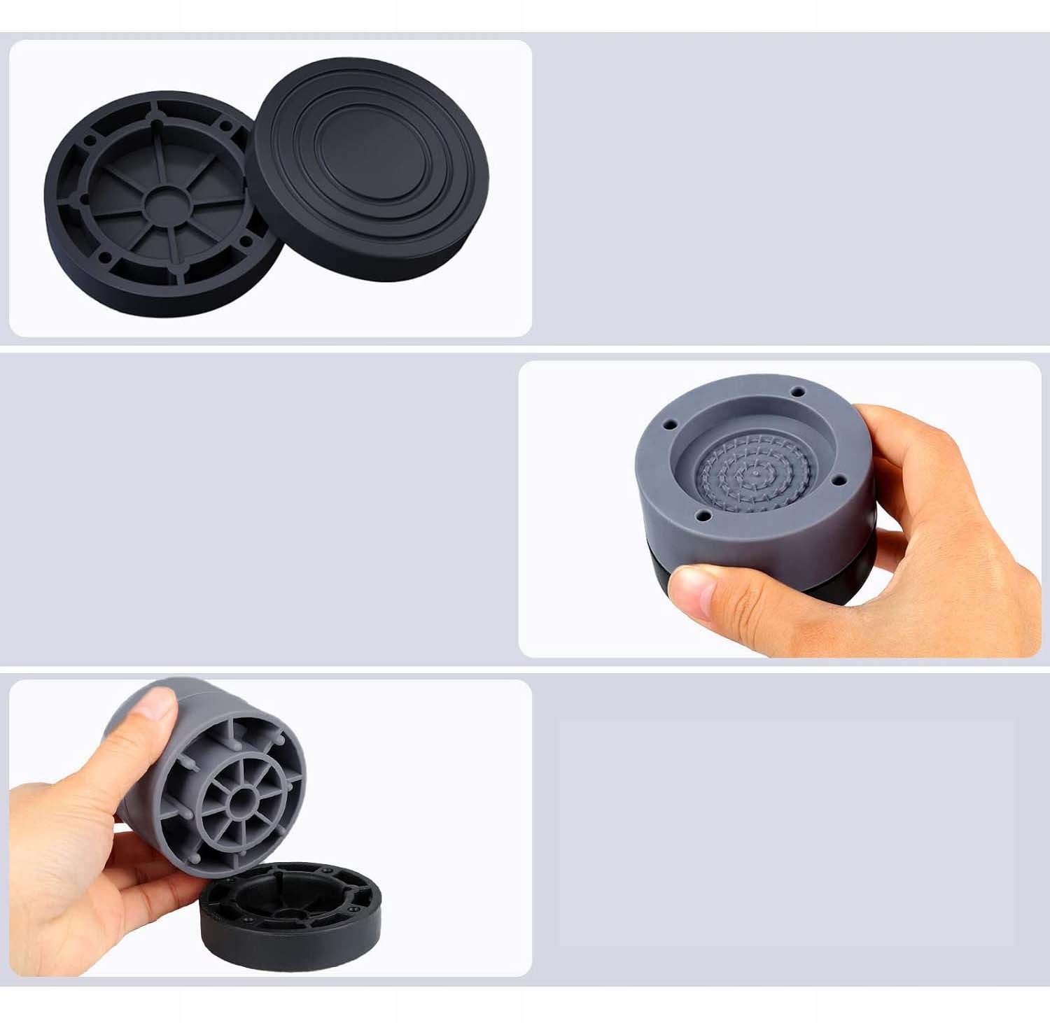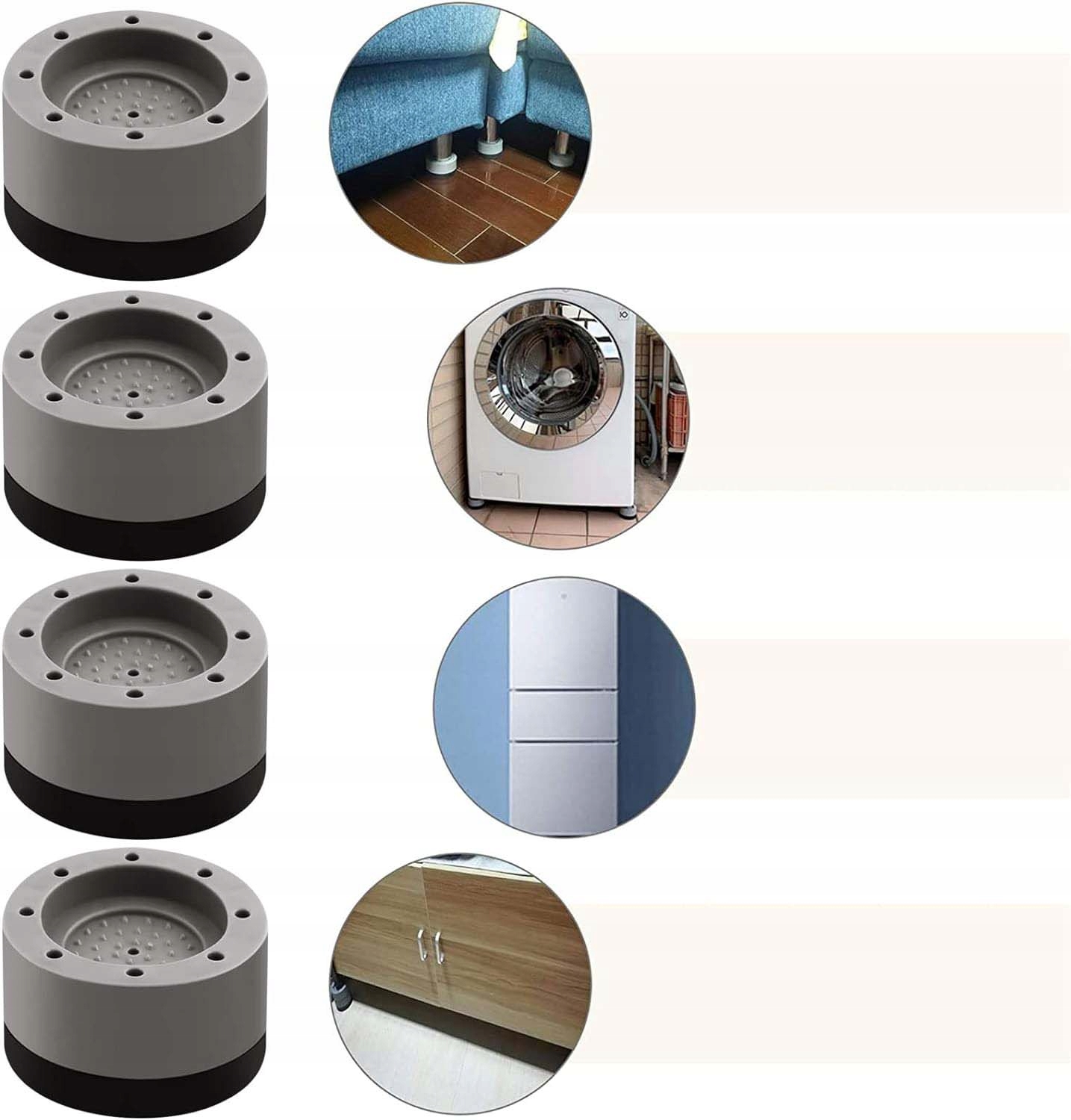 ✅ - Противоскользящие: гашение вибрации снижает шум, вызванный нестабильной работой стиральной или сушильной машины. Противоскользящая резина сводит вибрацию к минимуму. Помогает защитить бытовую технику от царапин и защитить деревянные полы и плитку.