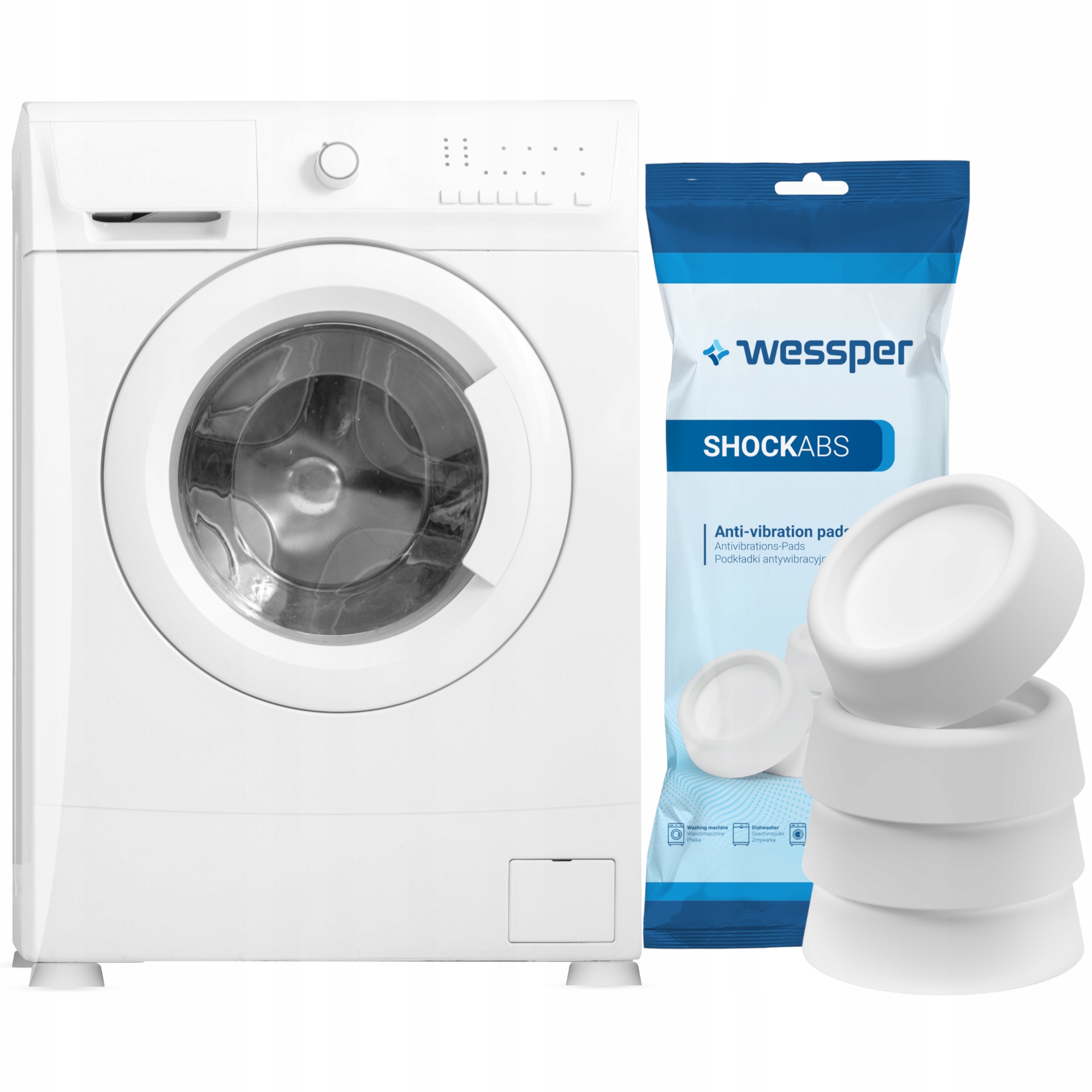 Универсальные колодки Wessper ShockABS подходят для любой стиральной, сушильной или посудомоечной машины. Они также пригодятся и в другой бытовой технике.