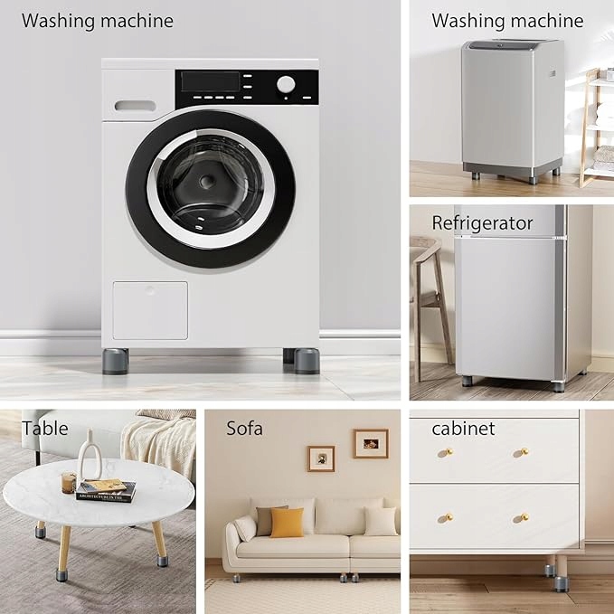 ПРОЧНЫЙ СИЛИКОНОВЫЙ МАТЕРИАЛ Антивибрационная опора стиральной машины изготовлена из высококачественного силикона. Он имеет хорошую грузоподъемность до 2000 фунтов. Хорошая прочность и износостойкость, устойчивость к влаге и коррозии.