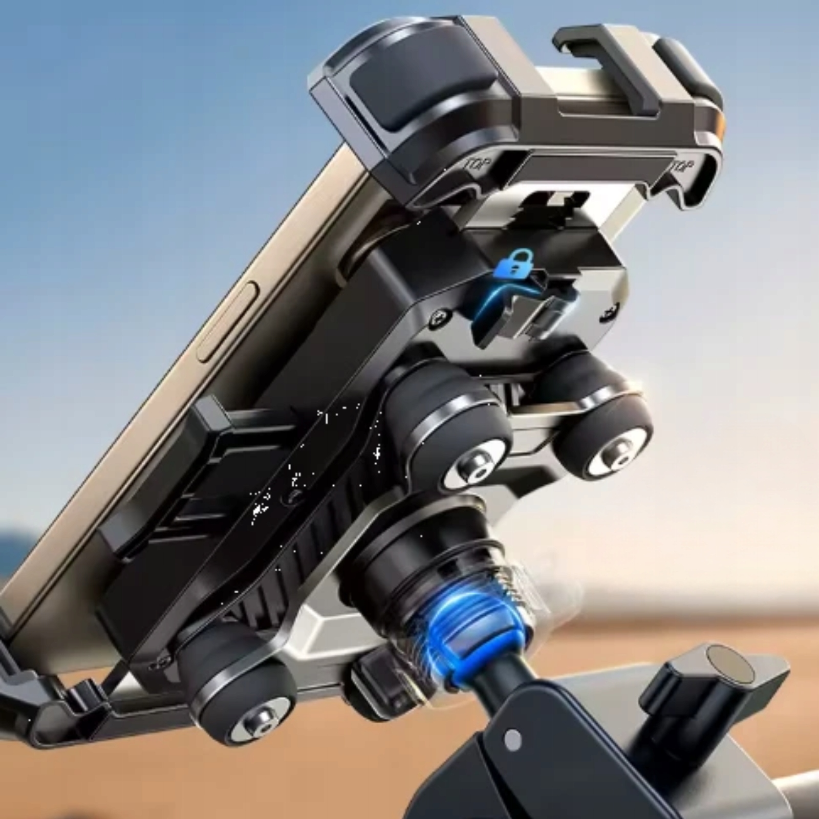- Антивибрационный мотоциклетный держатель для телефона — военная система гашения вибраций снижает до 80 % ударов.