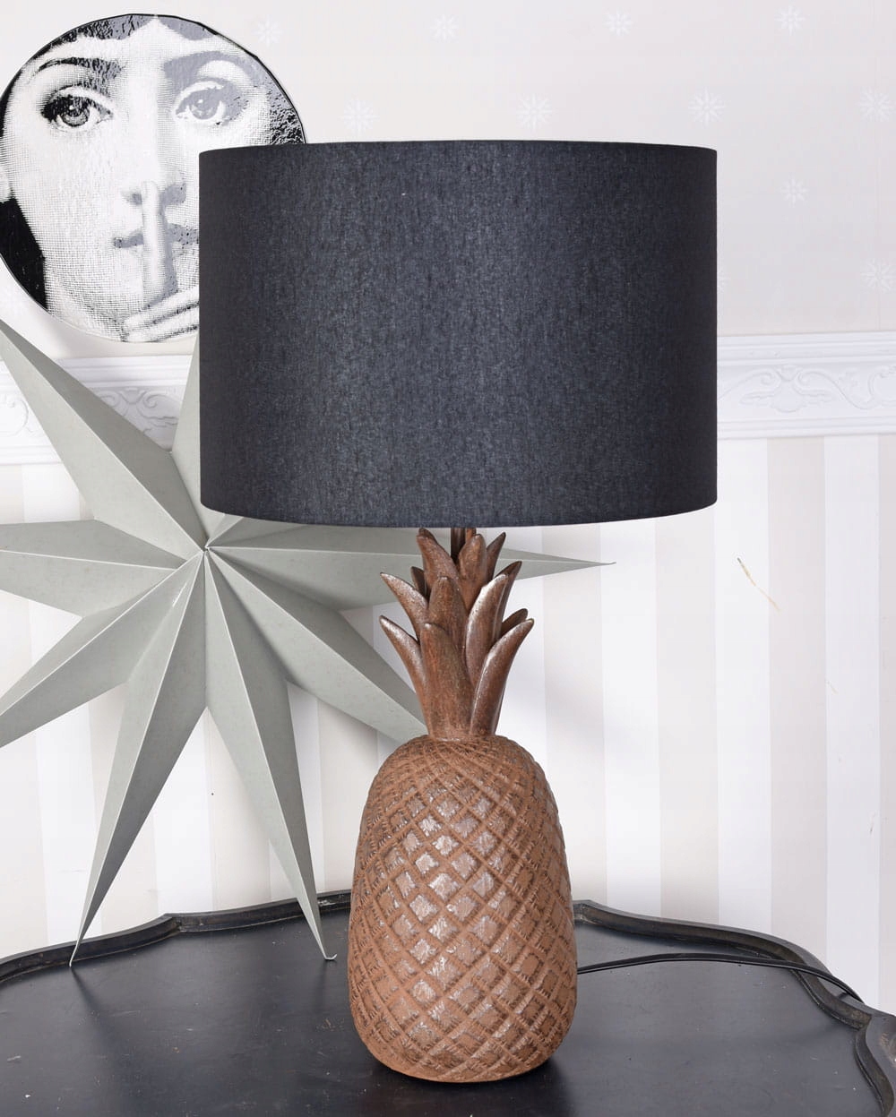 Модный ананас в качестве основы лампы, простой материальный абажур в черном.
