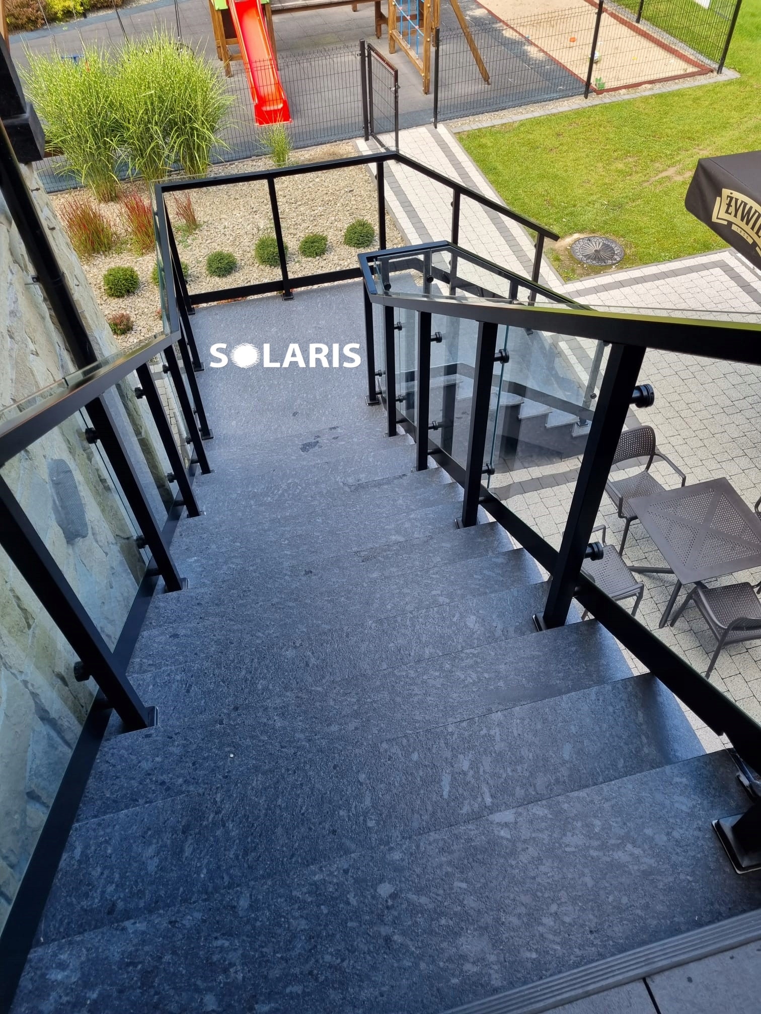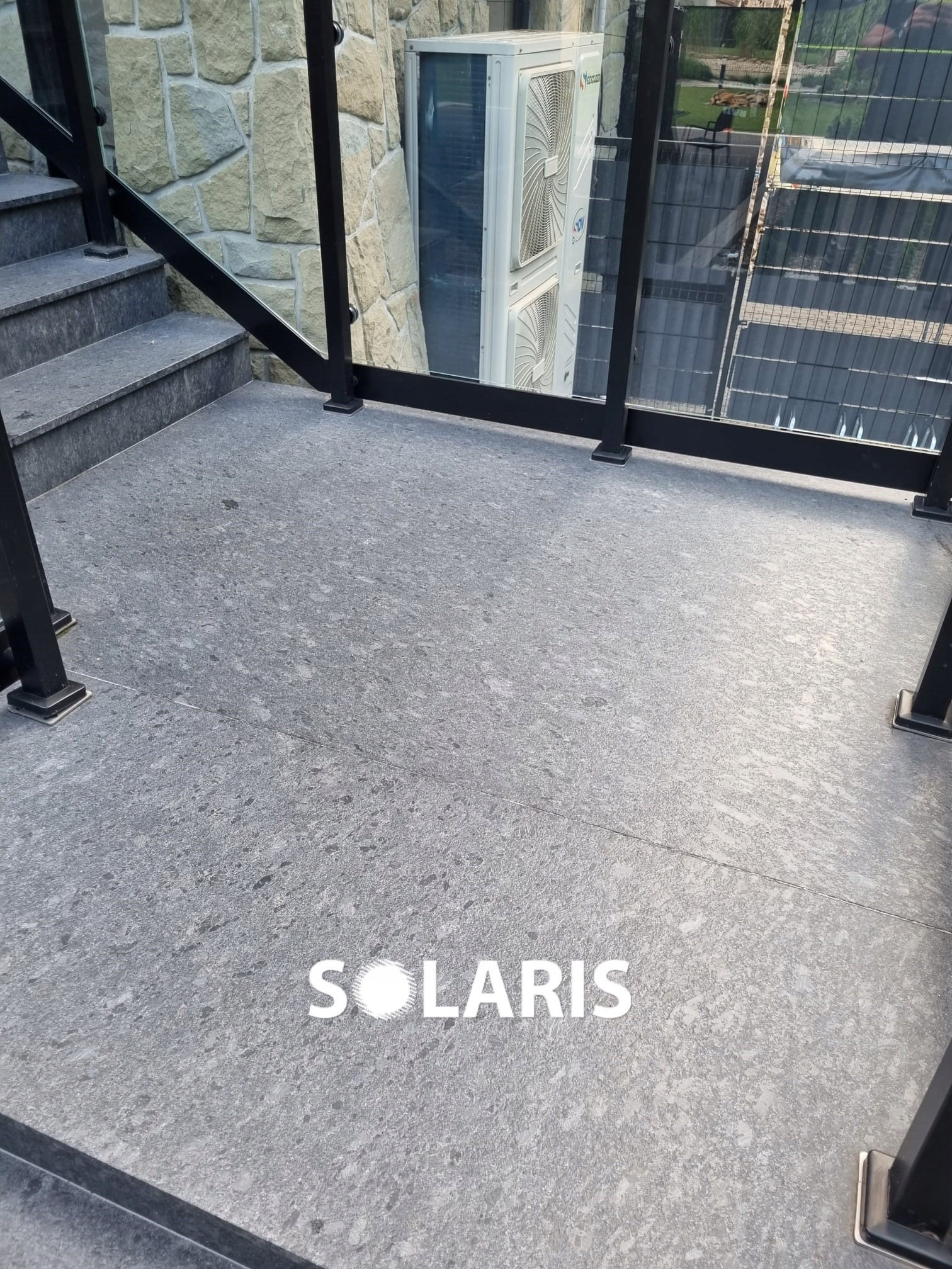 Лестница из антрацитового гранита, ступеньки пламенно-СЕРЫЕ СТАЛЬНЫЕ, 1 м Current GAT. И