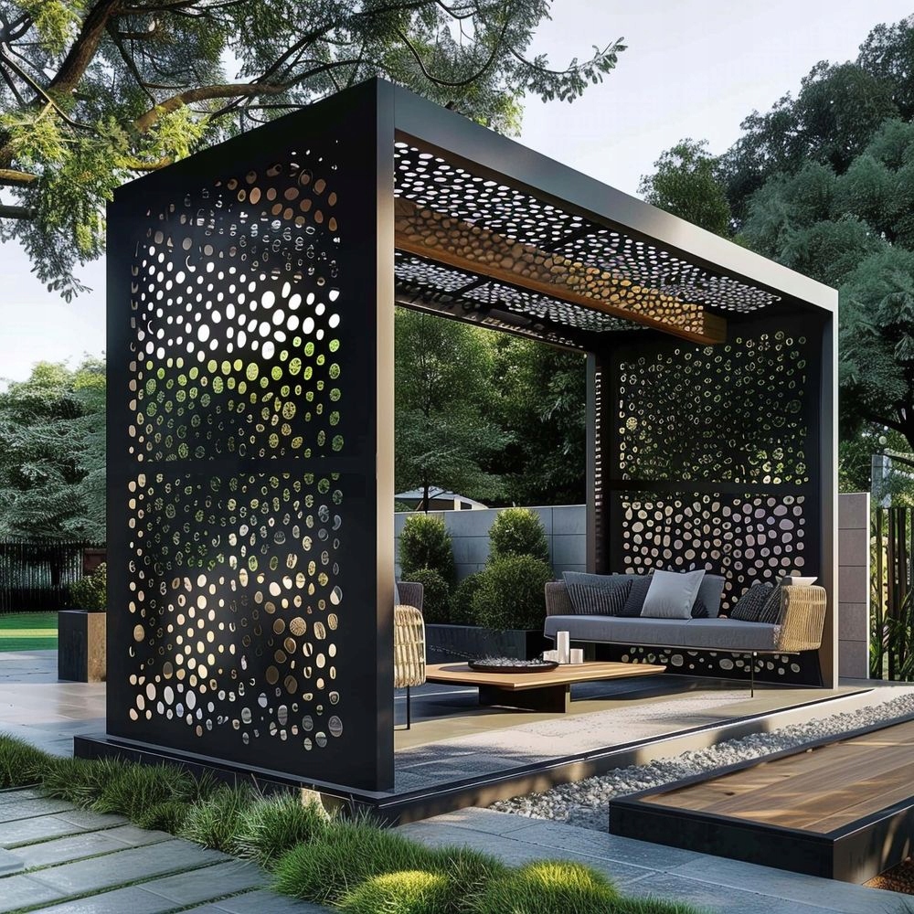 Вся конструкция панели может быть разработана таким образом, что шаблон на следующей панели является продолжением предыдущего шаблона. Панели легко установить могут использоваться в качестве ограждения, ворот, ворот, балюстрады, потолочной отделки, декоративных стен внутренних дел и альтов, садовых крыш, садовых крыш, пергол и террасовых зданий. В каждом элементе мы можем сократить готовые отверстия для заклепок или монтажных ручек в соответствии с потребностями клиента.