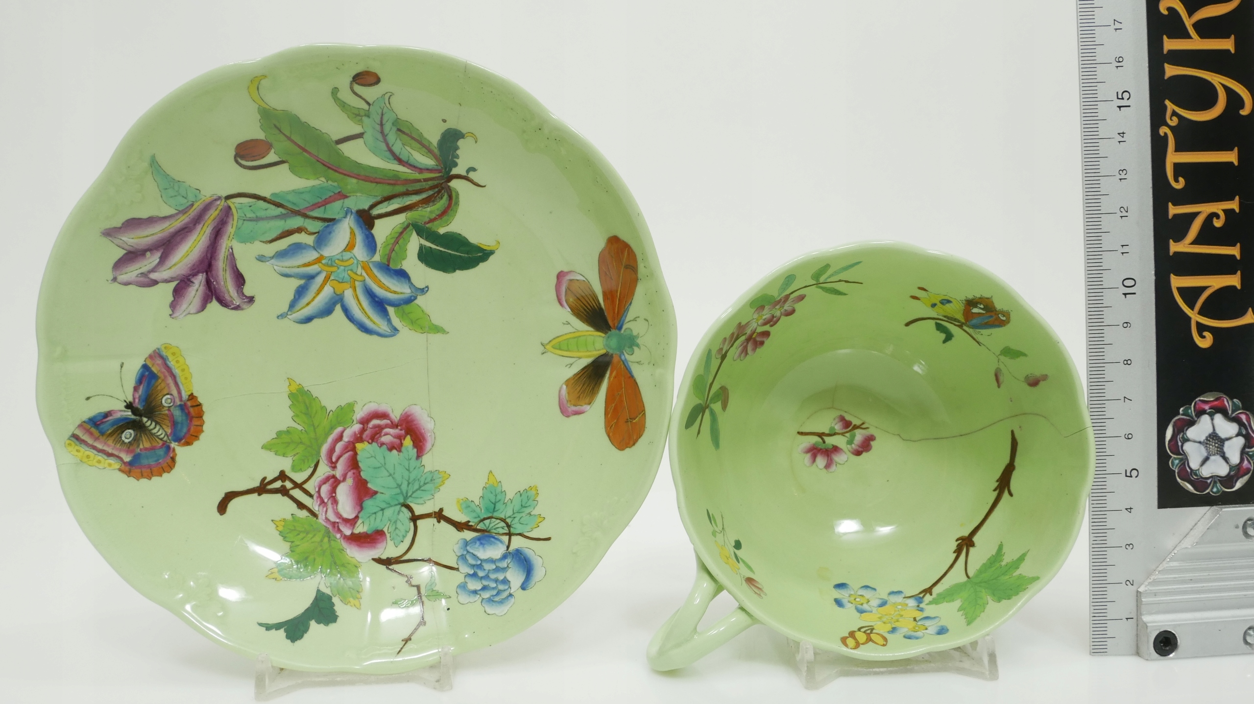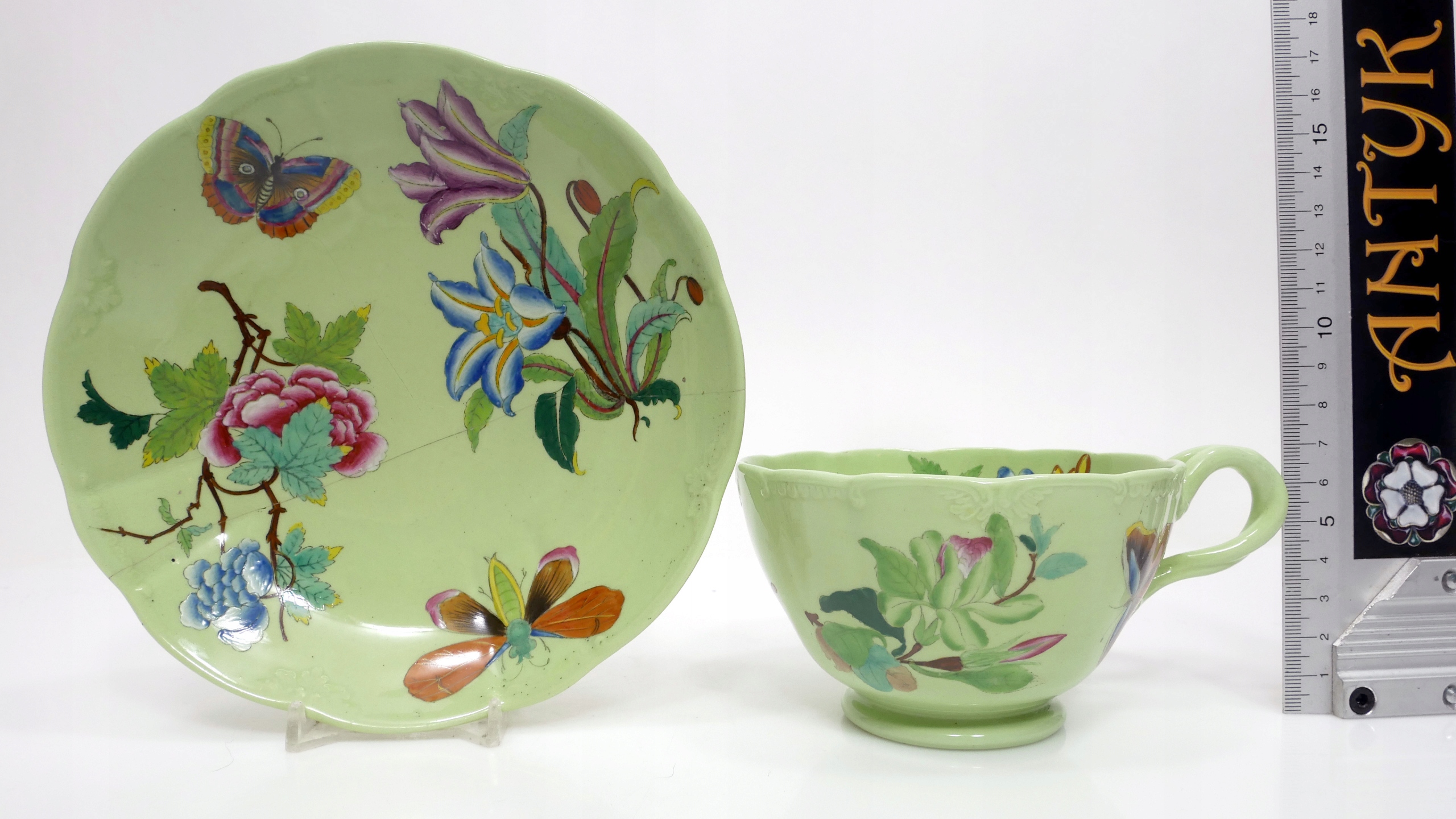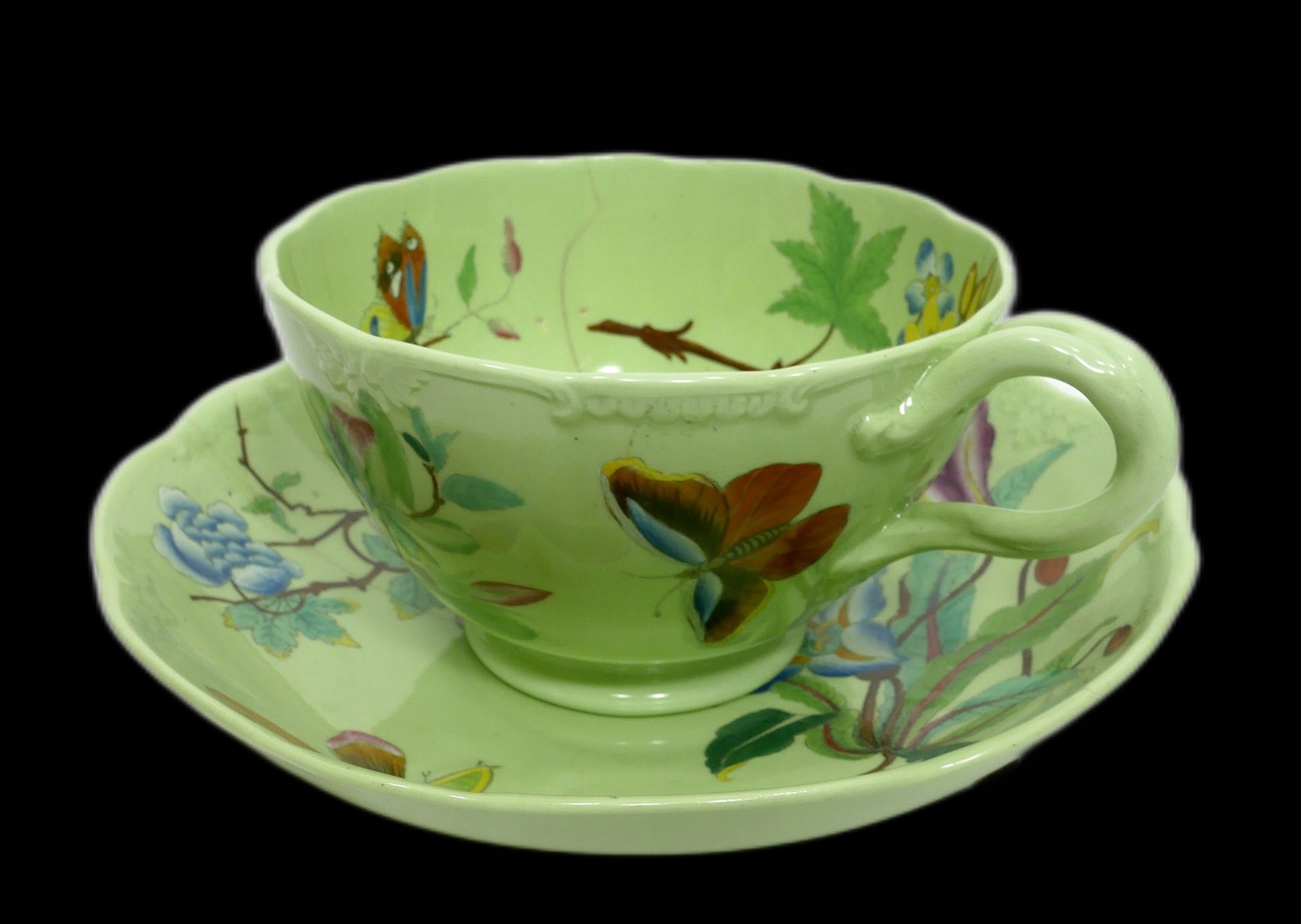 ANTYK - DUŻA ZIELONA WIKTORIAŃSKA FILIŻANKA Z MOTYLAMI