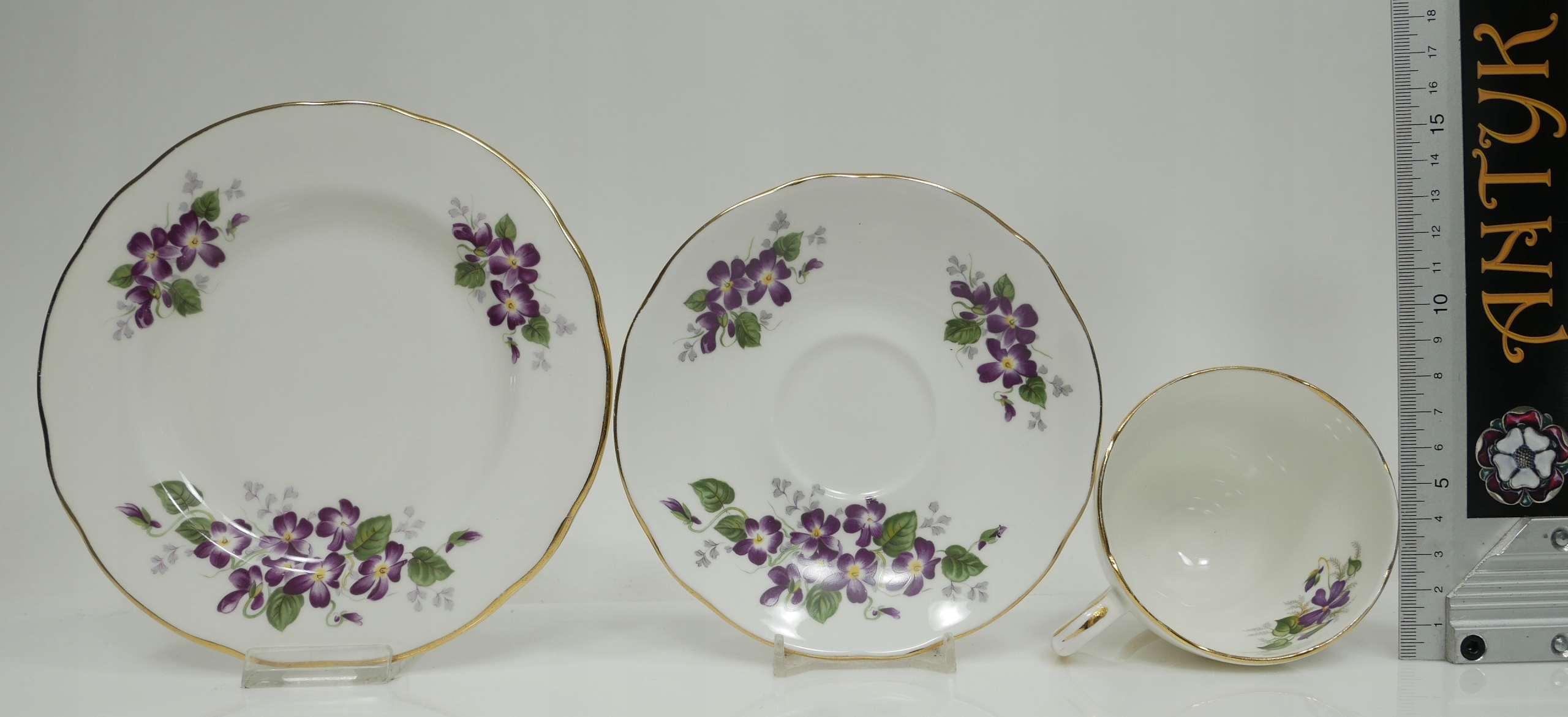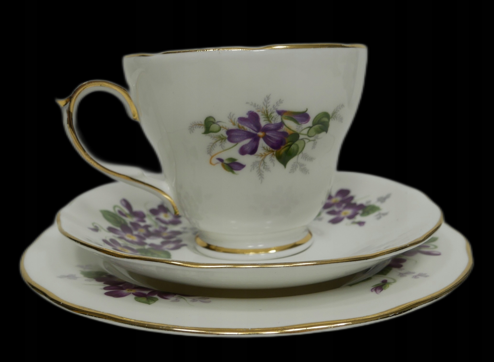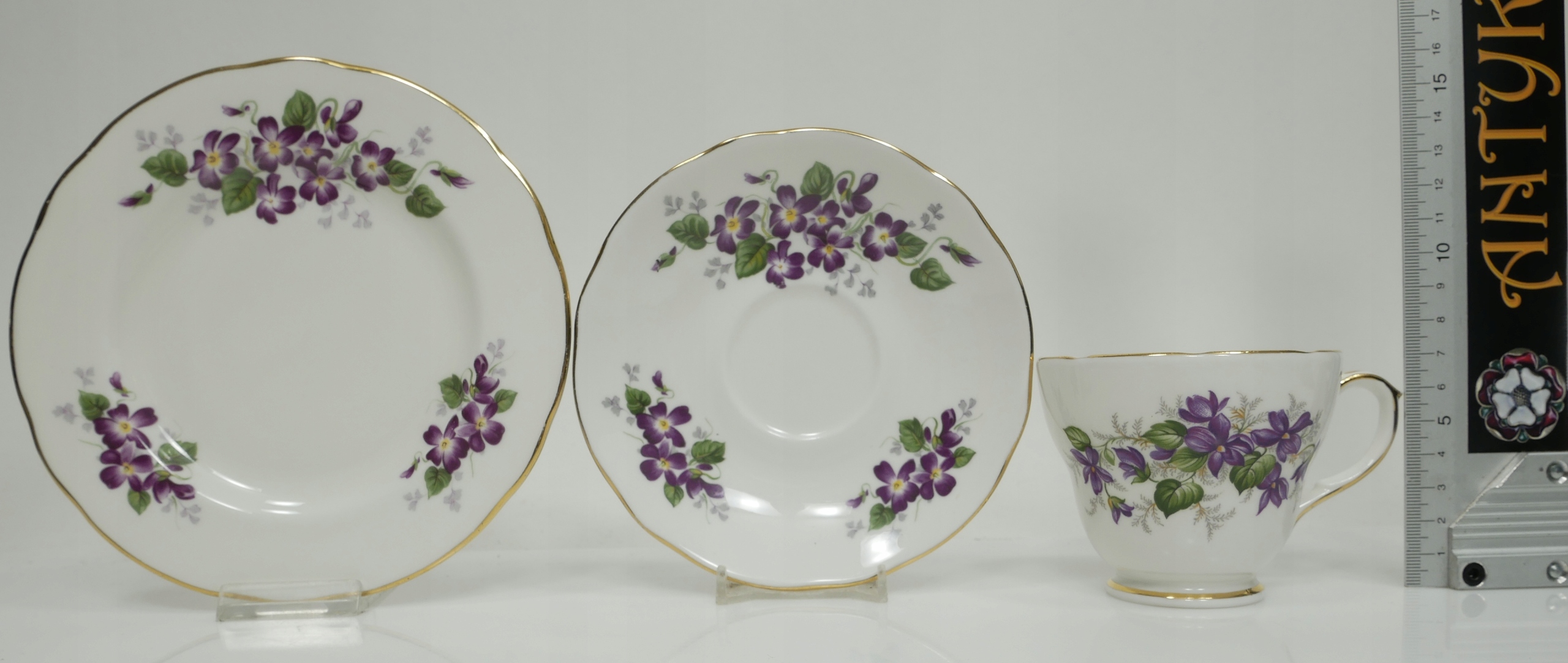 Antyk - трио чашки с фиалками - Duchass