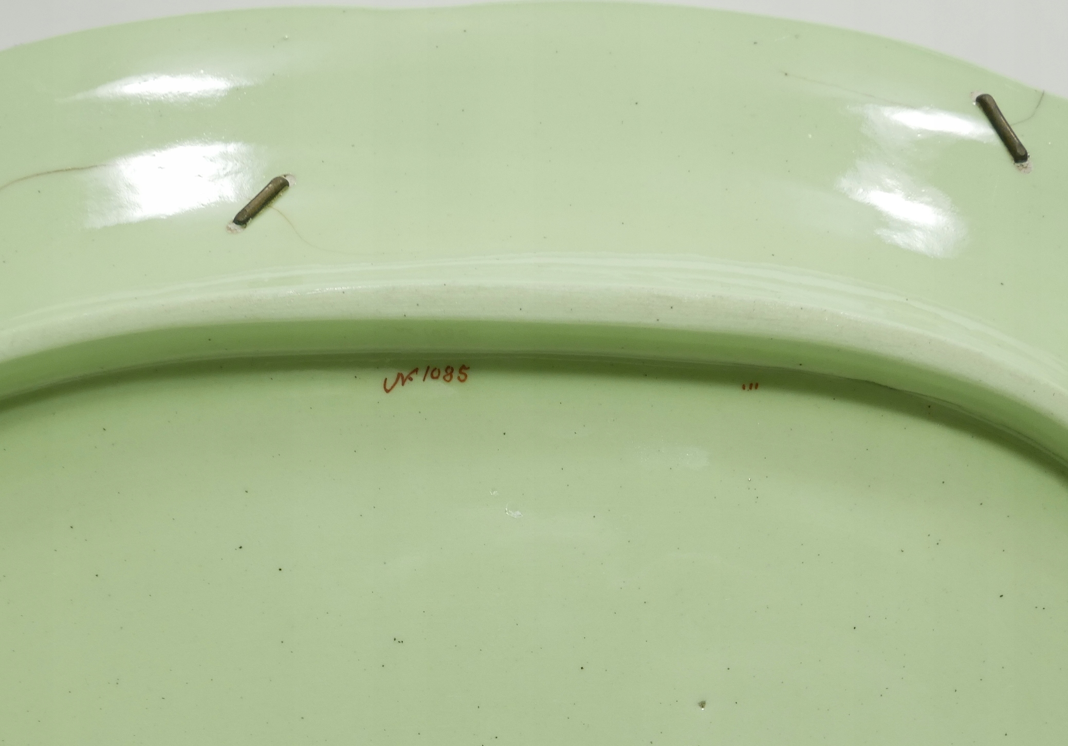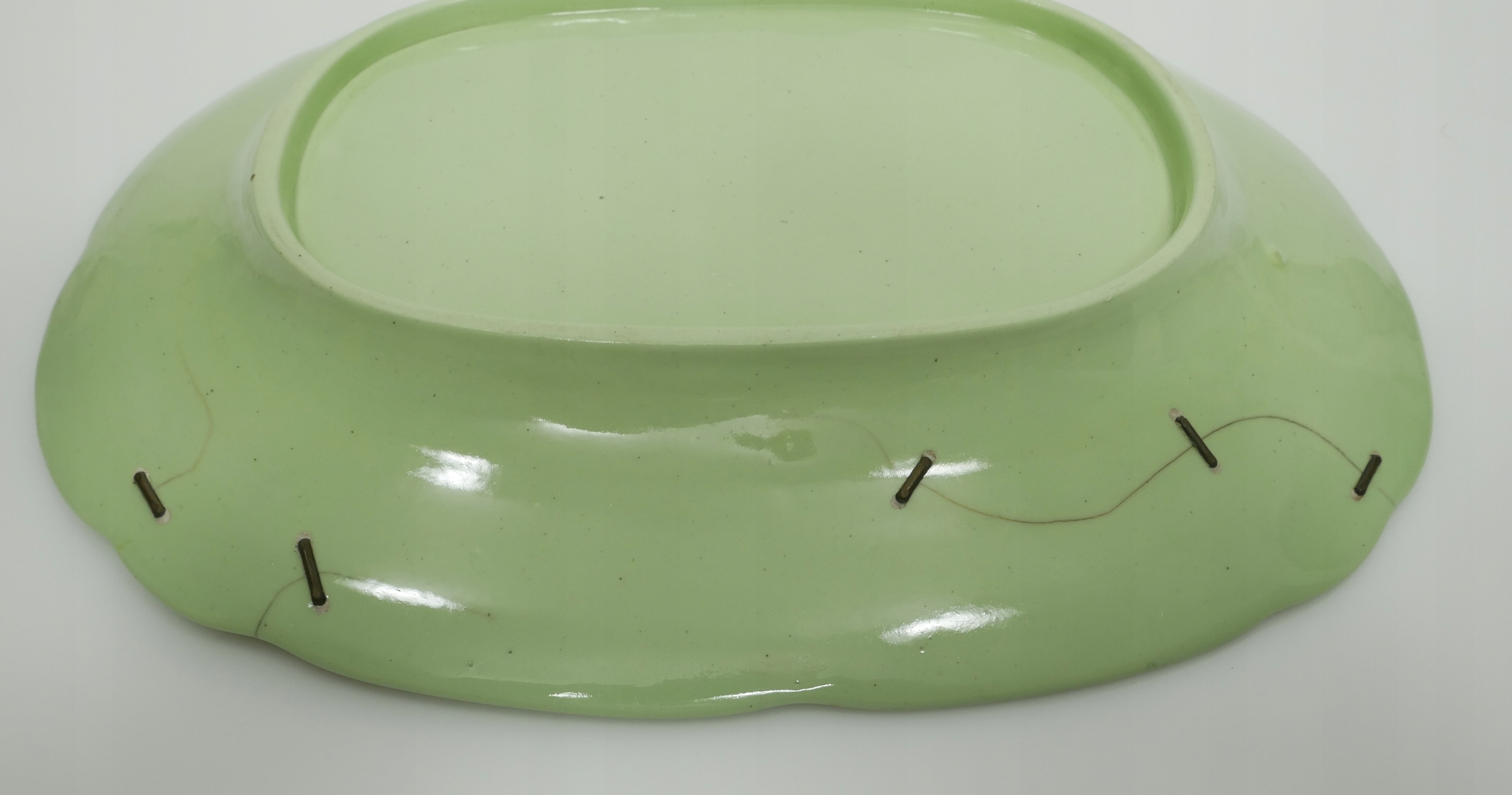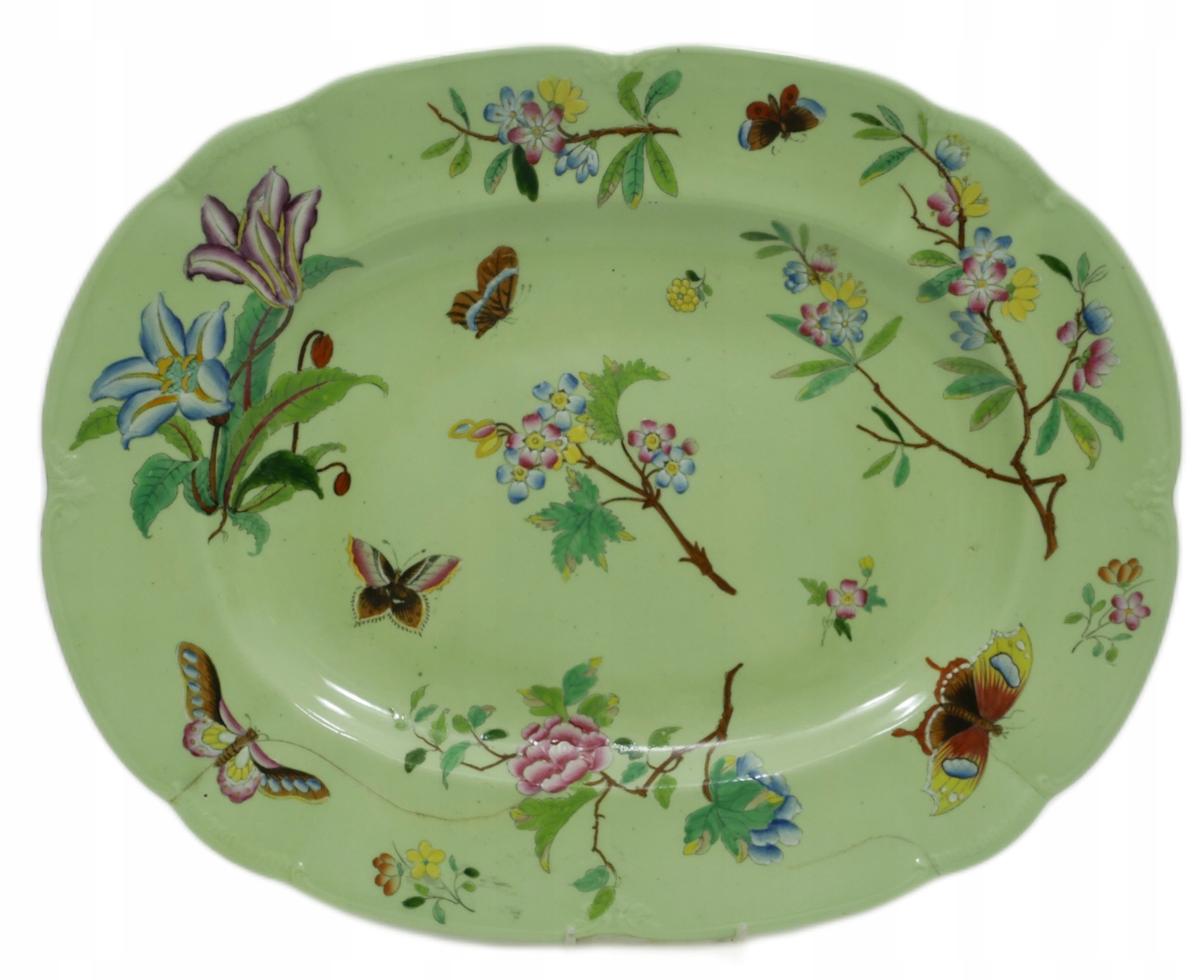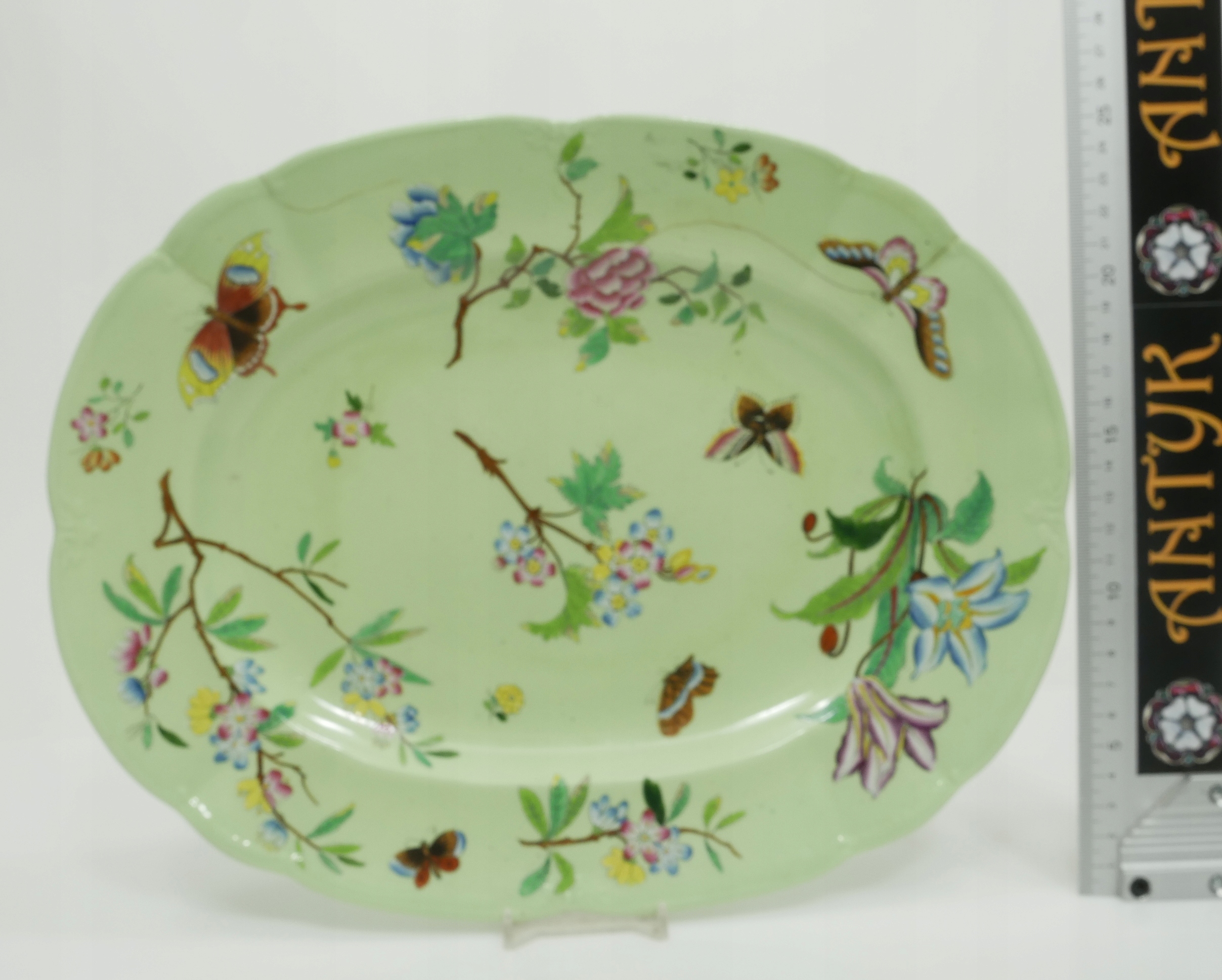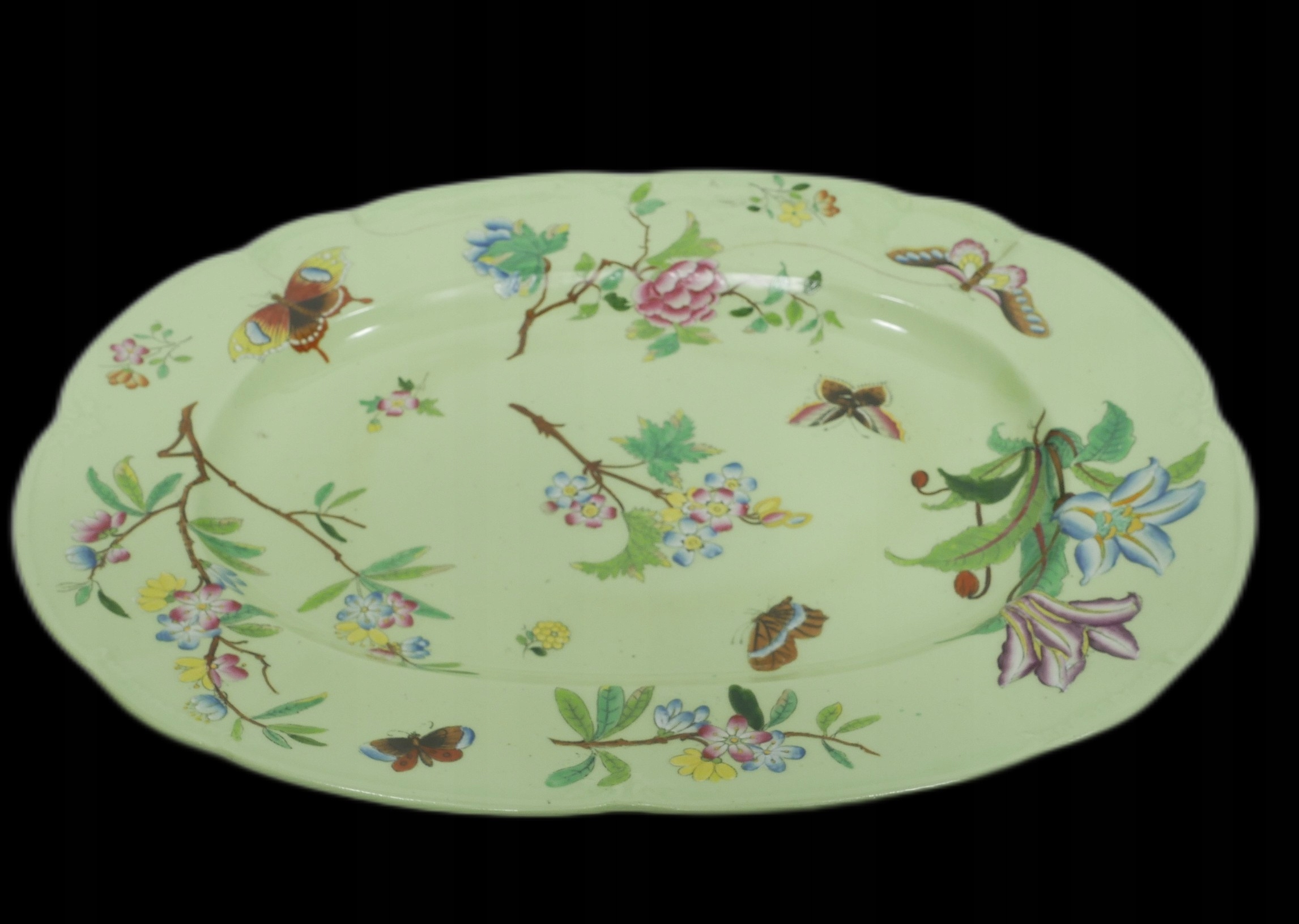 Antyk - зеленая викторианская тарелка с бабочками