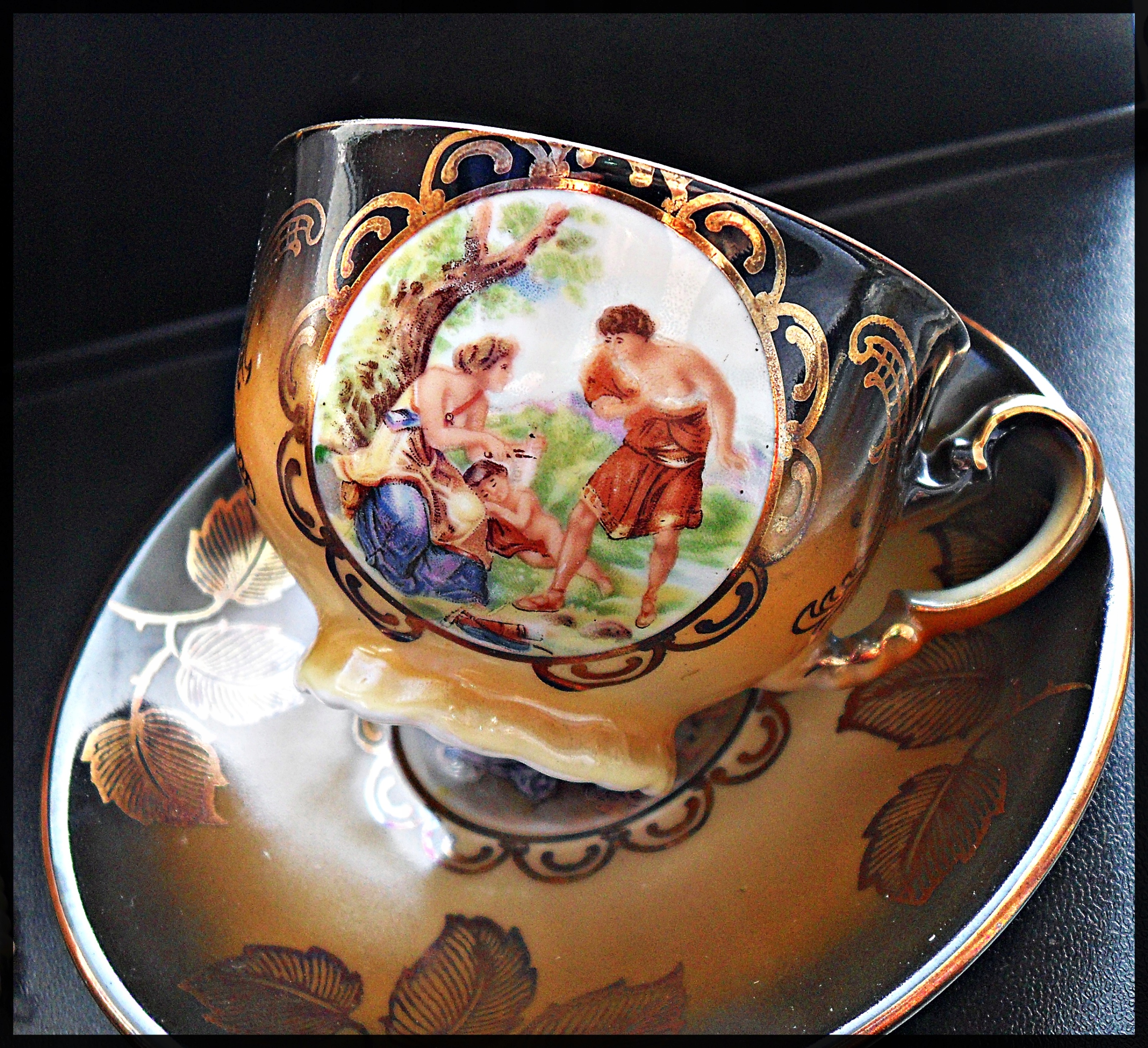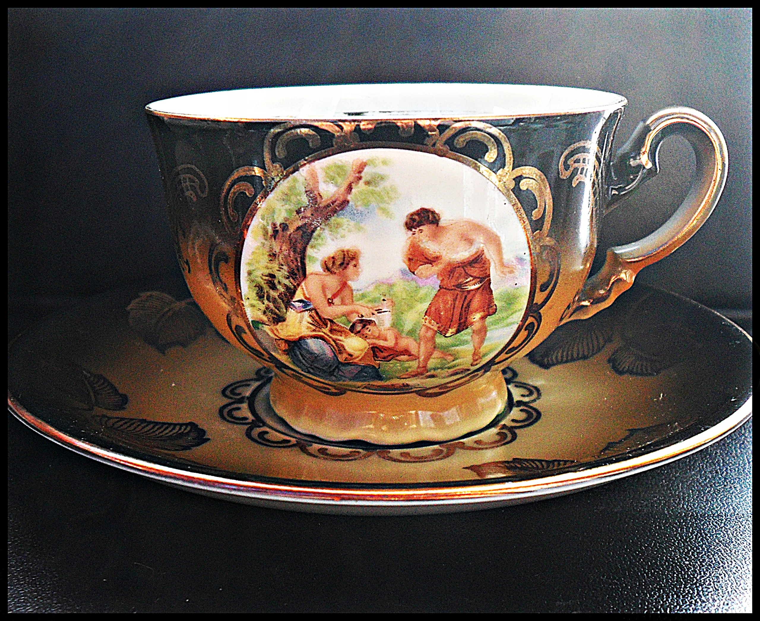 Antyk Filizanka Over ... жанровая сцена, старая Германия