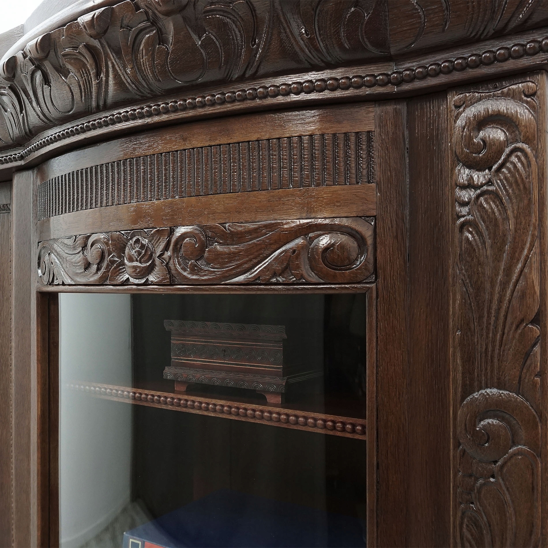 Придайте элегантность и красоту своему офису с помощью нашего уникального набора офисной мебели. Изготовленная из высококачественной дубовой древесины, эта мебель прочная и долговечная. Детали отделки и тонкий декор подчеркивают их эксклюзивный характер. Богато декорированные элементы, такие как резные панели и изысканные ручки, придают мебели неповторимый характер. В библиотеке есть просторные полки со стеклянными дверцами, идеально подходящие для хранения книг, документов и украшений. Стол оснащен удобной рабочей поверхностью и практичными ящиками для офисных принадлежностей. Такое уникальное сочетание функциональности и эстетики делает библиотеку и письменный стол уникальными элементами дизайна, напоминающими о старине и ремесленных традициях.