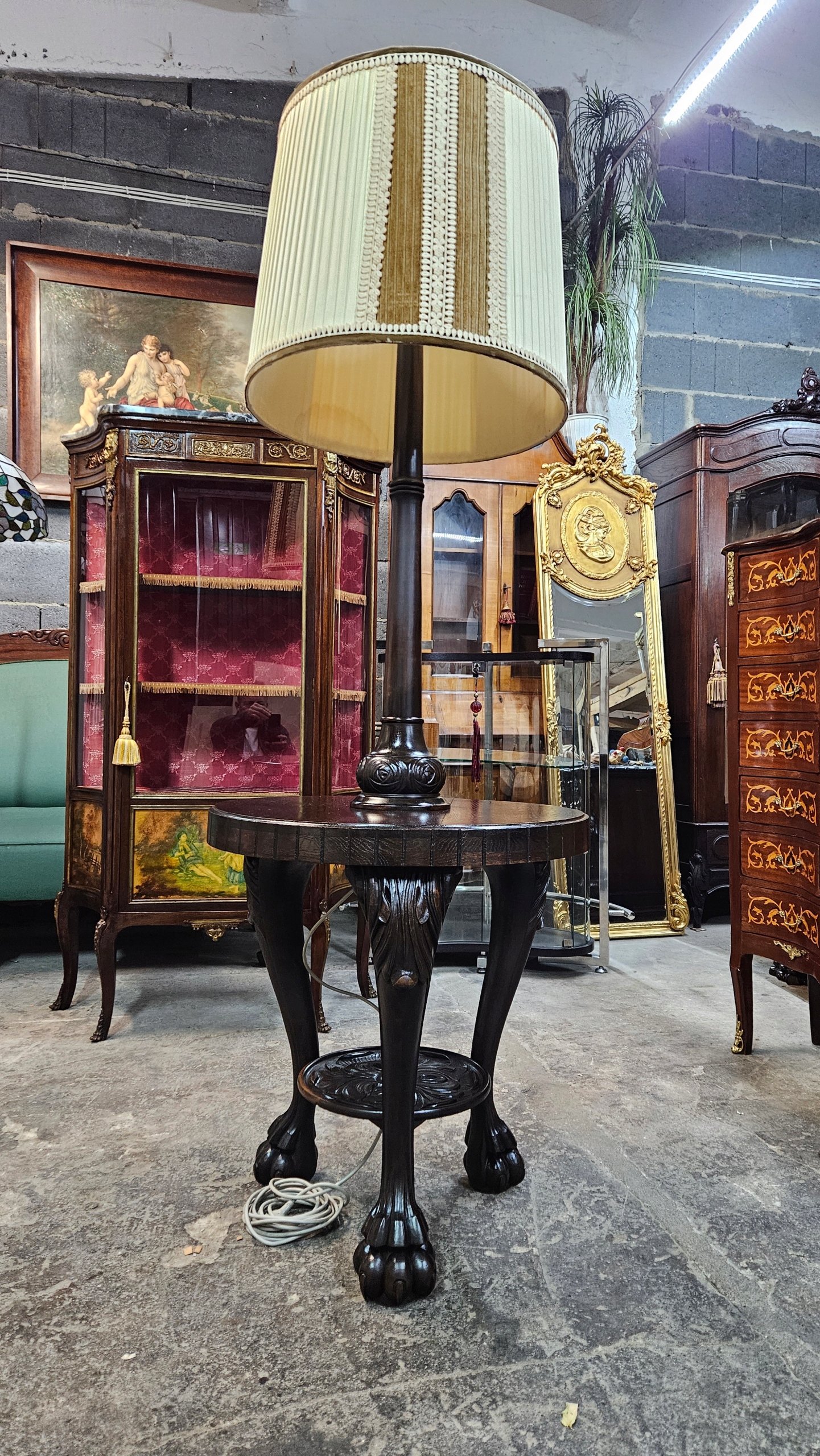 Antyk Stara Ładna Lampa Stojąca chippendale Drewno Stolik itp Abażur.