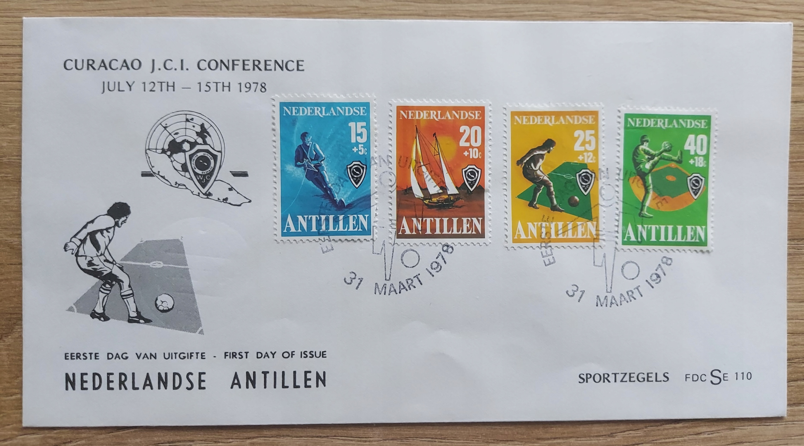 ANTYLE HOLENDERSKIE - ZESTAW 2 FDC. 1 Z BLOCZKIEM, SPORT.
