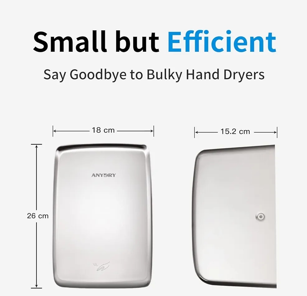 anydry 2803d компактная сушилка для рук, высокоскоростная, коммерческая, нержавеющая сталь, 1350 Вт, полированный h1>
