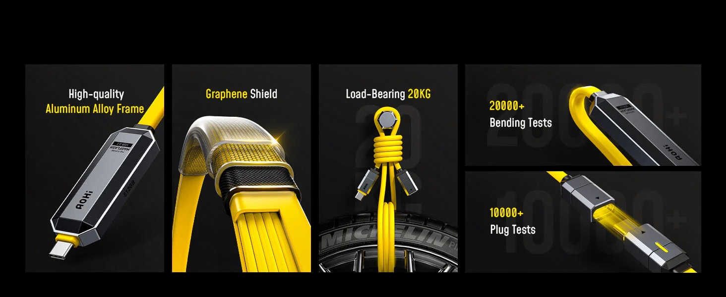 Комплект кабелей AOHI MagFlash оснащен интеллектуальным чипом E-Marker, который автоматически распознает подключенное устройство и настраивает оптимальные параметры зарядки. Это ускоряет зарядку на 80 %, а ее стабильность увеличивается на 90 %. Чип также обеспечивает защиту от перегрева, перегрузки по току и обеспечивает безопасность аккумулятора. Это решение гарантирует, что передача энергии остается быстрой и безопасной даже при интенсивном использовании. Это современная технология, которая делает кабели MagFlash надежным выбором для повседневной зарядки и передачи данных.