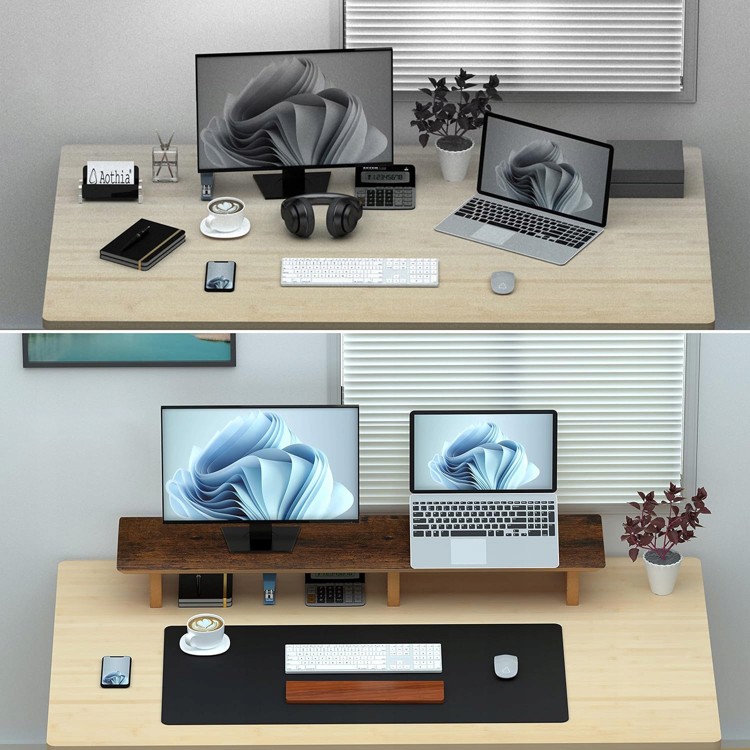 Aothia Большая деревянная база для мониторов на полке с ногами, офисным организатором