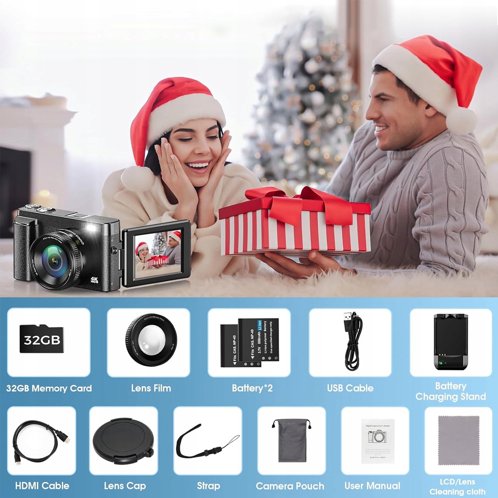 Цифровая камера может плавно записывать видео в формате 4K FHD, поддерживает функции покадровой съемки и замедленной съемки, а также общие эффекты во время записи видеоблогов. Функция паузы видео помогает регулировать время редактирования и объем памяти. Кроме того, эта видеокамера 4K оснащена 3,0-дюймовым экраном, который можно поворачивать на 180 градусов, что упрощает съемку под углом.