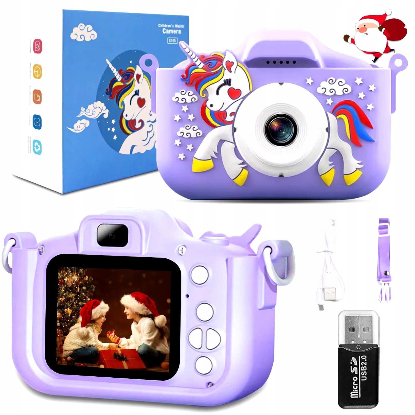 APARAT CYFROWY DLA DZIECI KAMERA HD ETUI JEDNOROŻEC GRY + SMYCZ