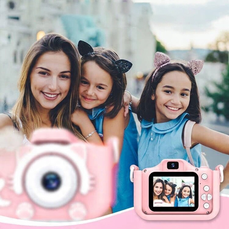 Эта детская видеокамера специально разработана для детей. Милый кошачий внешний вид и силиконовый противоударный чехол привлекают внимание детей. Дети могут легко повесить его на шею, играть в помещении и на улице. Дети весело проведут время, фотографируя, и разовьют свое воображение и творческие способности. Идеальный подарок детям на День защиты детей, дни рождения, Рождество и праздники.