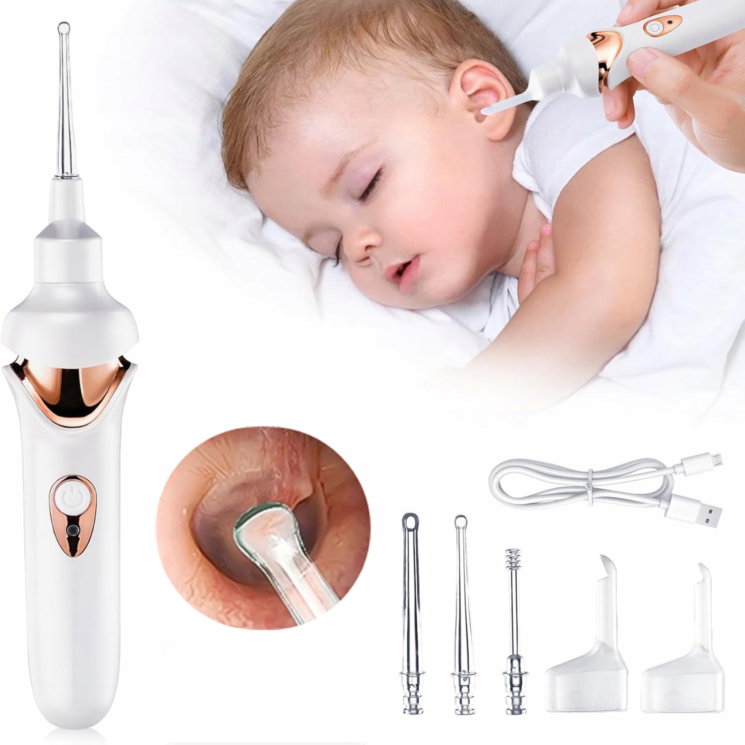 Попрощайтесь с традиционными, опасными ватными палочками! Наш инновационный беспроводной очиститель для ушей — это революция в домашней гигиене. Благодаря встроенному светодиодному источнику света можно безопасно заглянуть глубоко в ушной проход, точно удалив ушную серу без риска его повреждения.