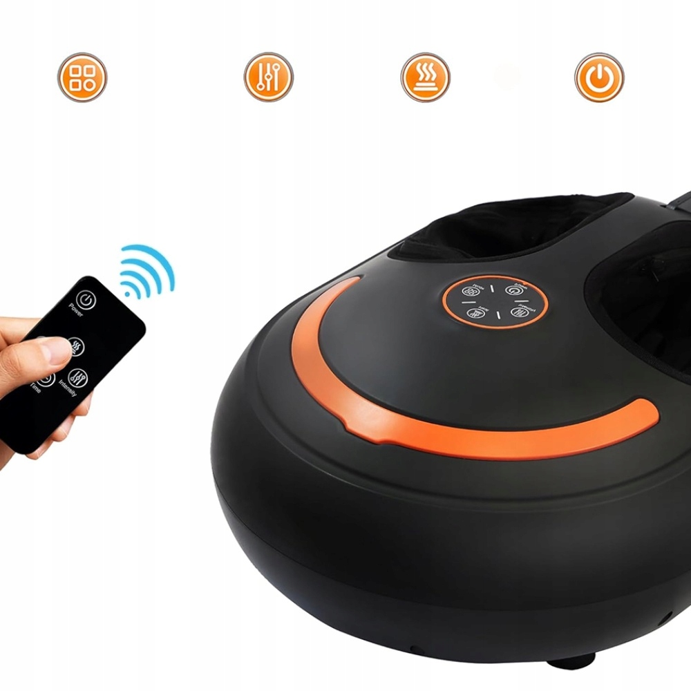 - Этот черный массажер для ног шиацу с функцией нагрева предлагает 4 режима массажа, 6 уровней интенсивности сжатия воздуха, 3 уровня температуры нагрева, несколько настроек времени, сенсорный ЖК-экран и беспроводной пульт дистанционного управления. контроль.