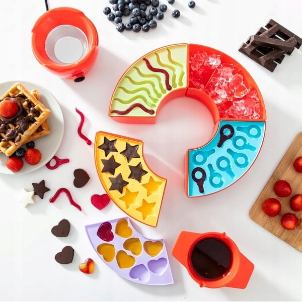Процесс приготовления предельно прост. . В комплект входит миска для растворения массы для приготовления желе, а благодаря различным силиконовым формочкам желе может иметь причудливую форму.