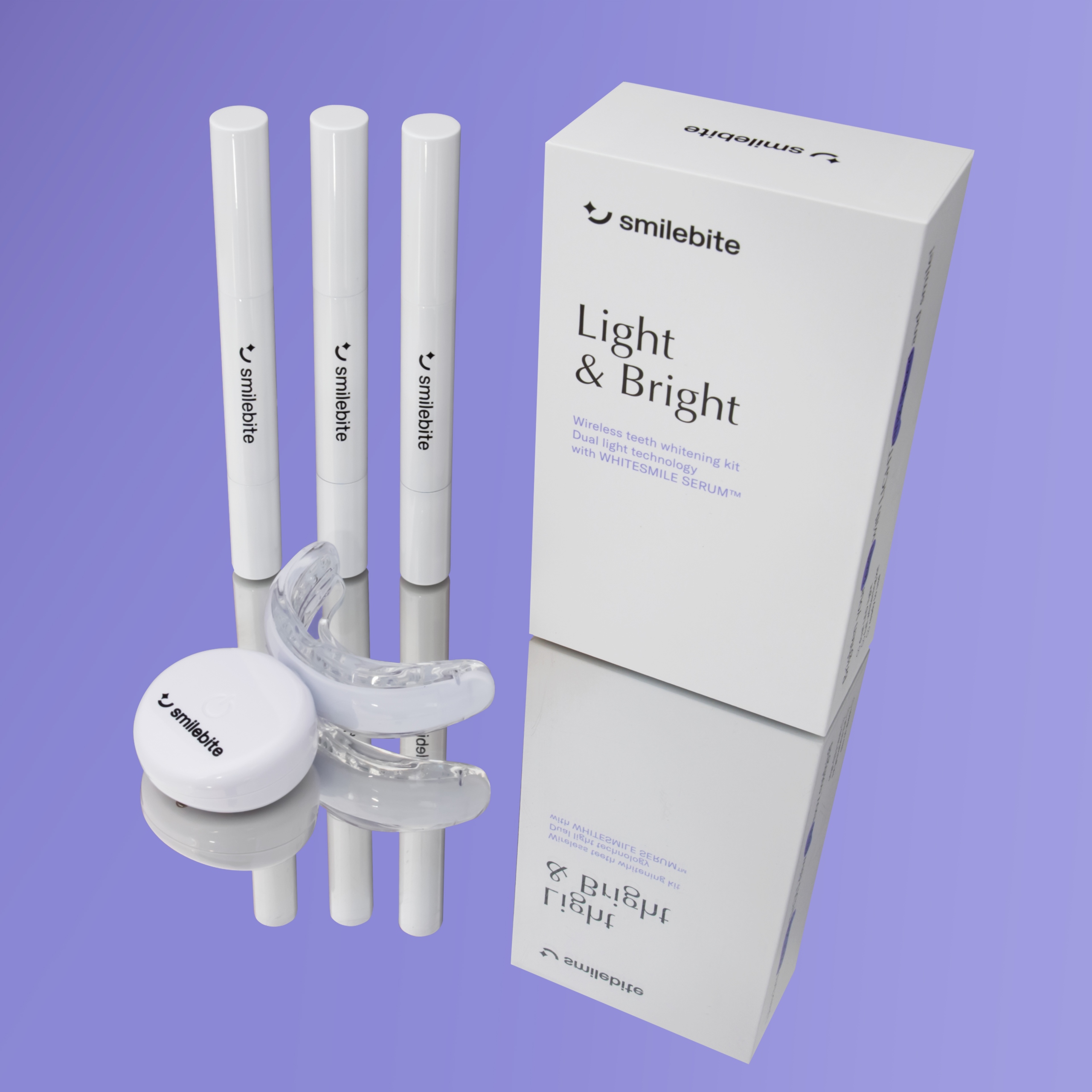 Устройство Light & Bright оснащено таймером, который помогает отслеживать время отбеливания, что упрощает соблюдение рекомендованного лечения. Он не содержит вредной перекиси водорода, что делает его безопасным для зубной эмали. Smilebite также обеспечивает комфорт использования благодаря эргономичной накладке, подходящей к любой форме рта, и возможности очистки в воде, что повышает гигиеничность использования.