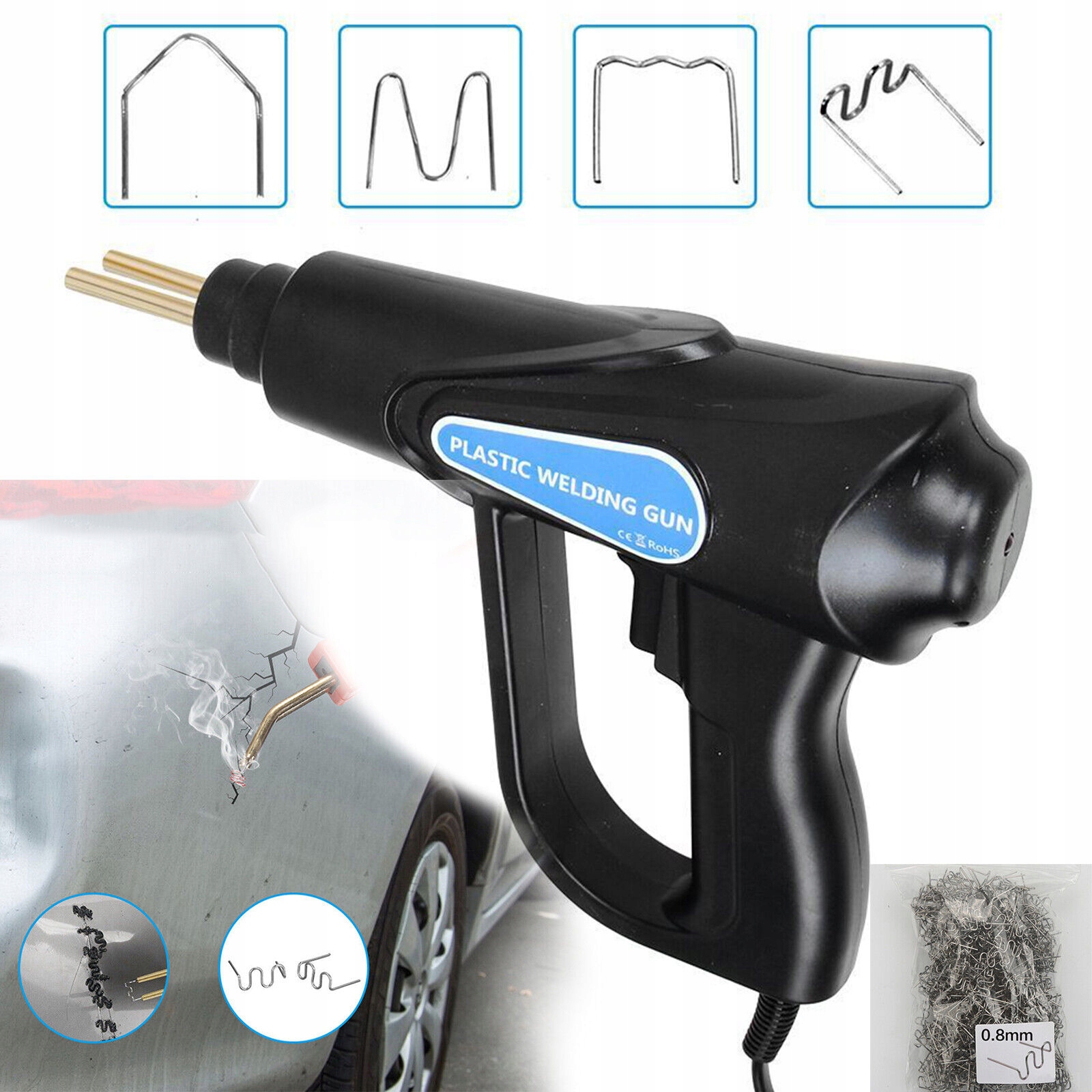● Сварочный аппарат для пластика — универсальный и мощный инструмент, способный отремонтировать не менее 98 деталей. % пластика, доступного на рынке, что делает его незаменимым аксессуаром для любого механика или любителя DIY. Идеально подходит для ремонта: бампера, приборной панели, патрона лампы, пластикового кольца, радиатора, спойлера, дверных ручек, фар, пластиковых крыльев, пластикового автомобильного и мотоциклетного оборудования и т. д.