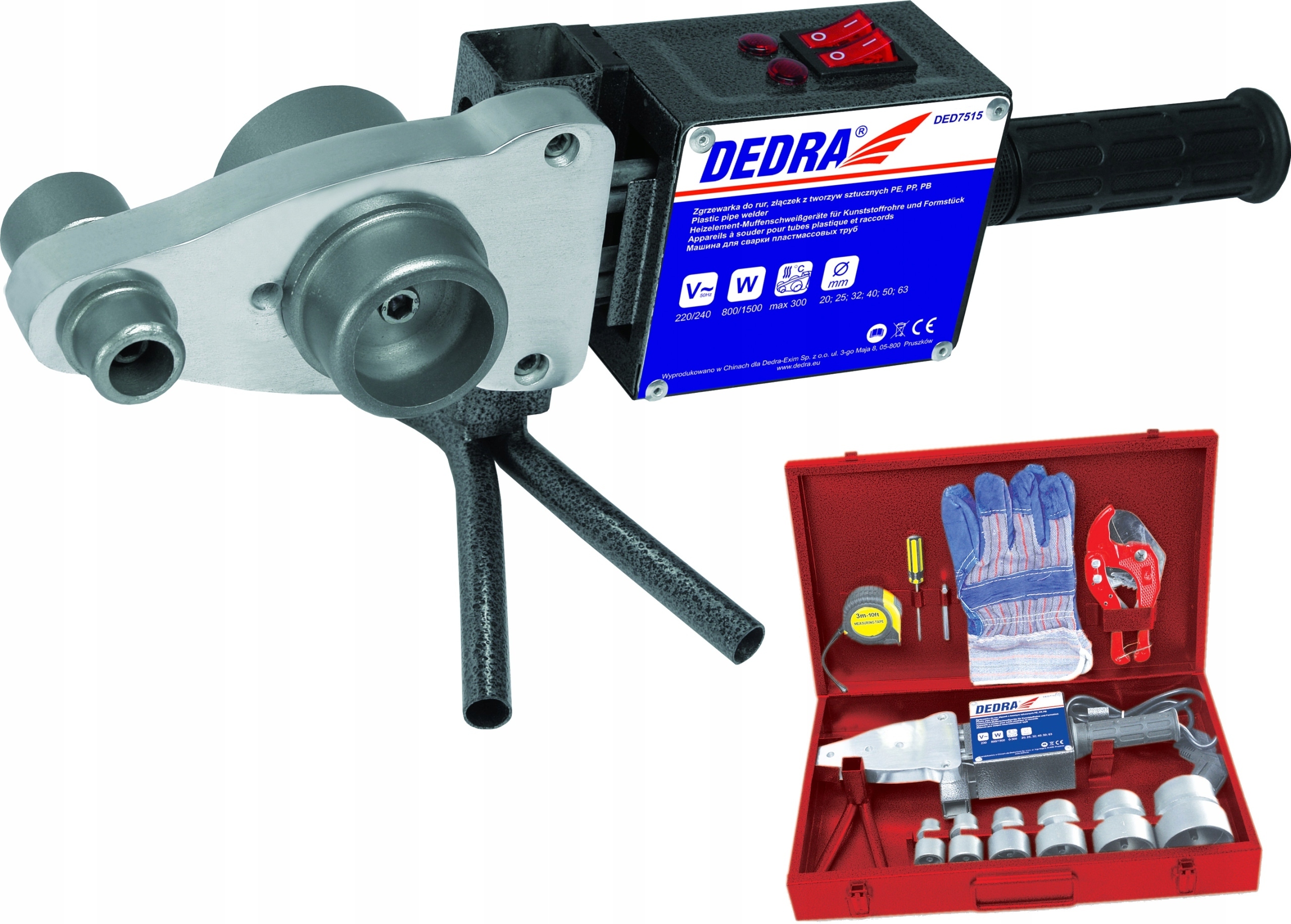 Сварочный аппарат DEDRA DED7515 800/1500Вт для пластиковых труб и соединителей, металлический корпус, диапазон 16-63мм, ПЭ, ПП, ПБ