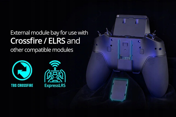 Zorro Radio имеет порт внешнего модуля для использования с Crossfire/ELRS и другими совместимыми модулями.
