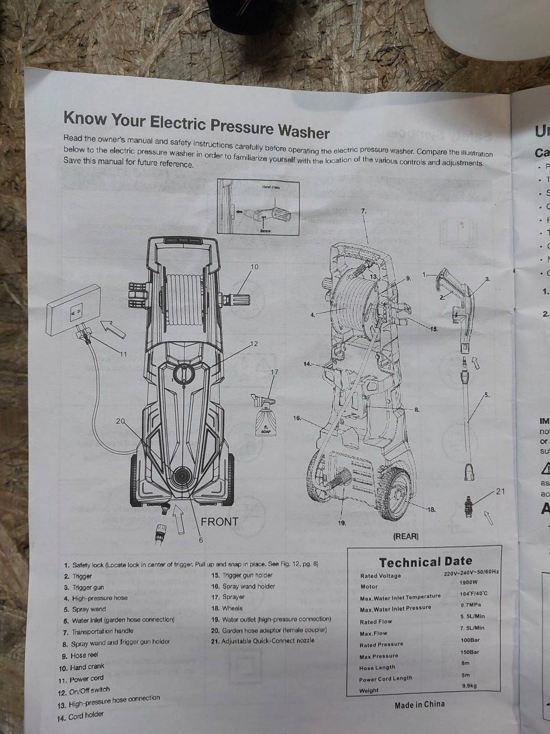 - Высокое давление: мощный двигатель мощностью 1900 Вт, создающий давление до 150 бар. Идеально подходит для очистки дорожек, настилов, цемента, мощения, бассейнов, уличной мебели, легковых и грузовых автомобилей, внедорожников, квадроциклов и многого другого.