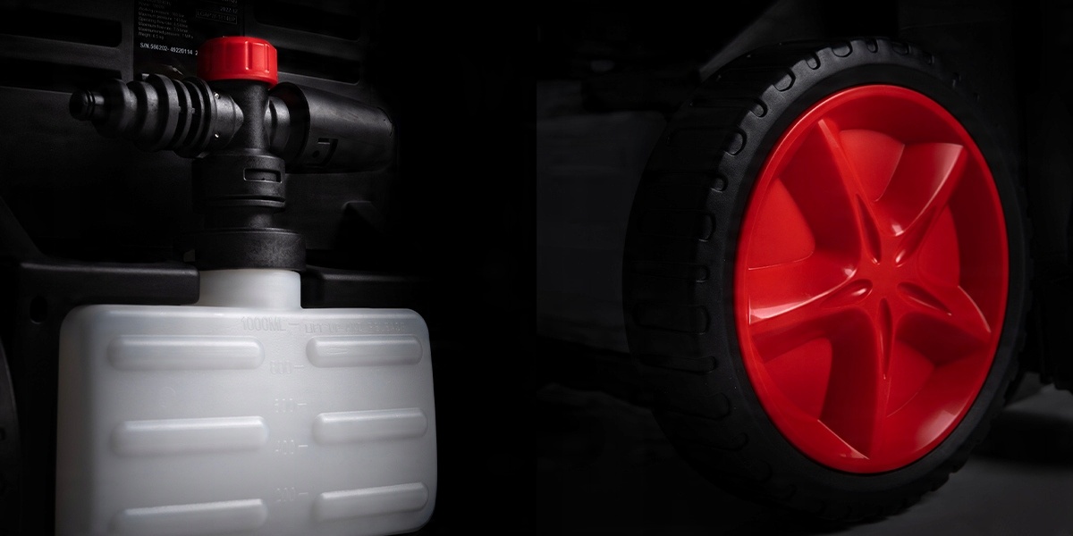 Стиральная машина также имеет так называемую вихревую насадку. турбо, использование которого увеличивает мощность мойки до 50%, благодаря чему мы легко отмываем старую грязь и сохраняем в чистоте брусчатку или фасады.