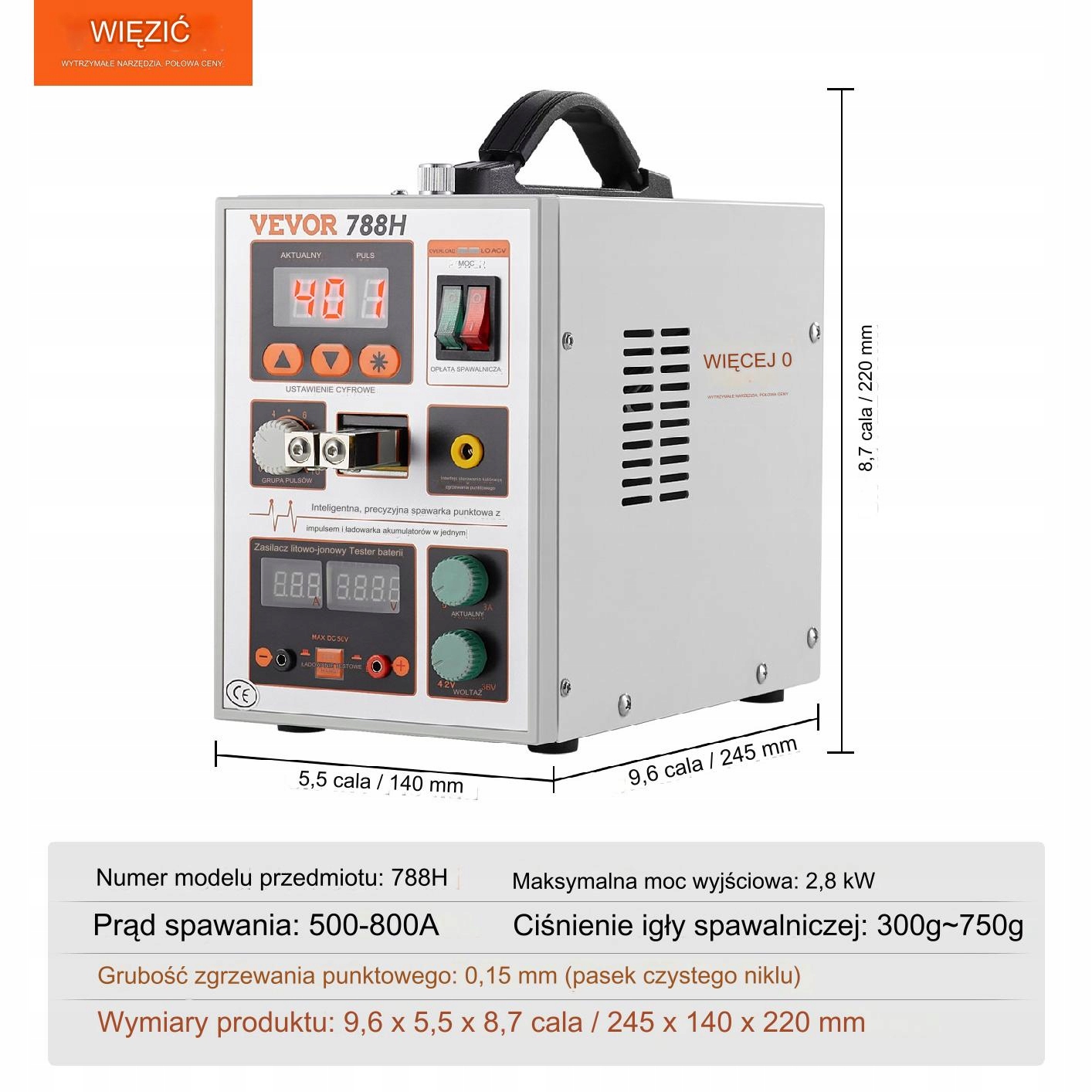 Толщина точечной сварки: 0,15 мм (полосы из чистого никеля).Размеры: 24,5 x 14,0 x 22,0 см.