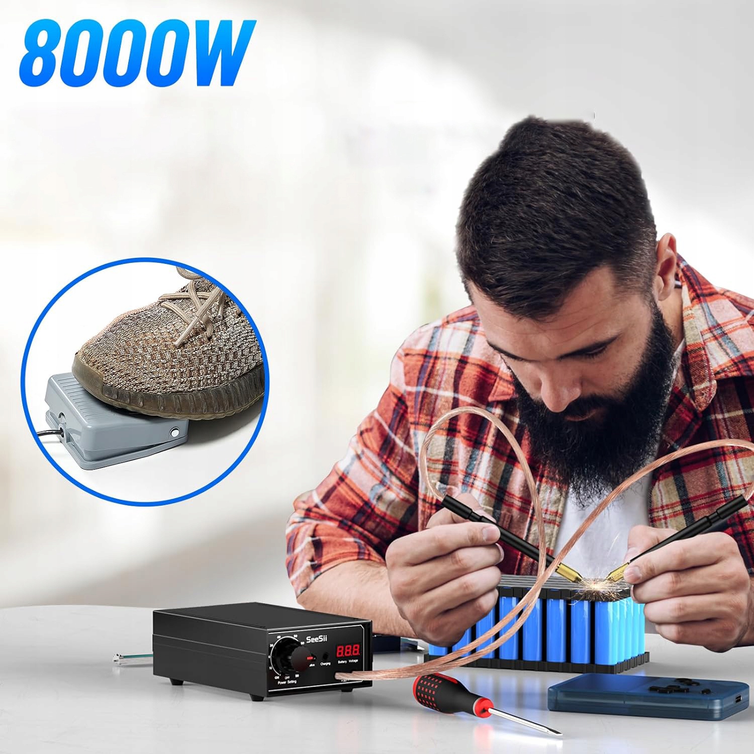 Апарат точкового зварювання з педаллю 8000 Вт на акумулятор 18650