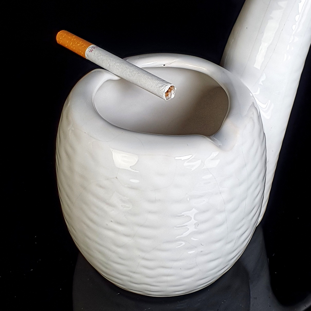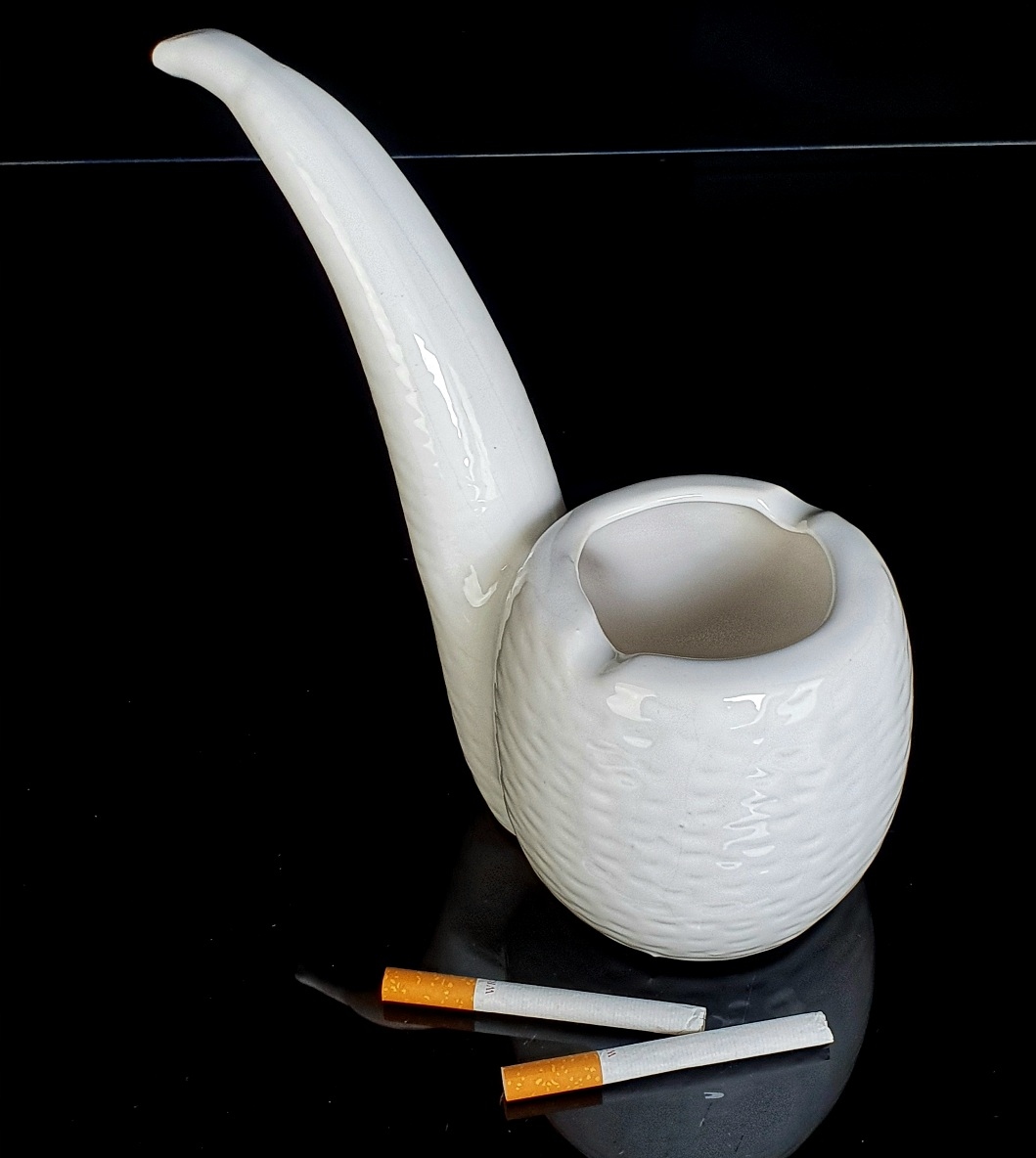 Большая пепельница из фаянса в форме трубы.