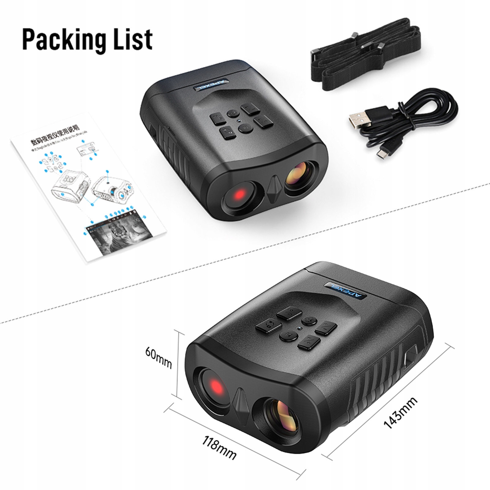 - 【5x оптический и 3 -кратный цифровой масштаб】 с 5x оптическим и 3 -кратным цифровым масштабированием, бинокль этой ночи позволяет вам более внимательно взглянуть на отдаленные предметы, не теряя качества изображения.
