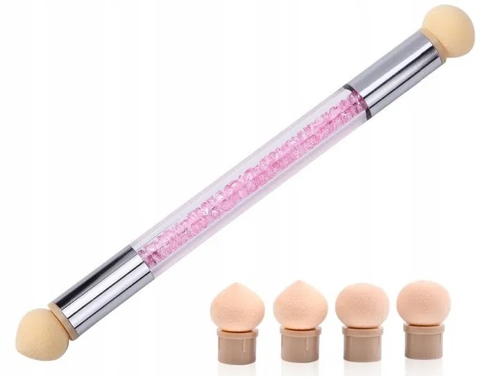 В комплект входит по одной ручке со спонжами с каждой стороны + 4 запасных спонжа. Ручка внутри украшена розовыми кристаллами.